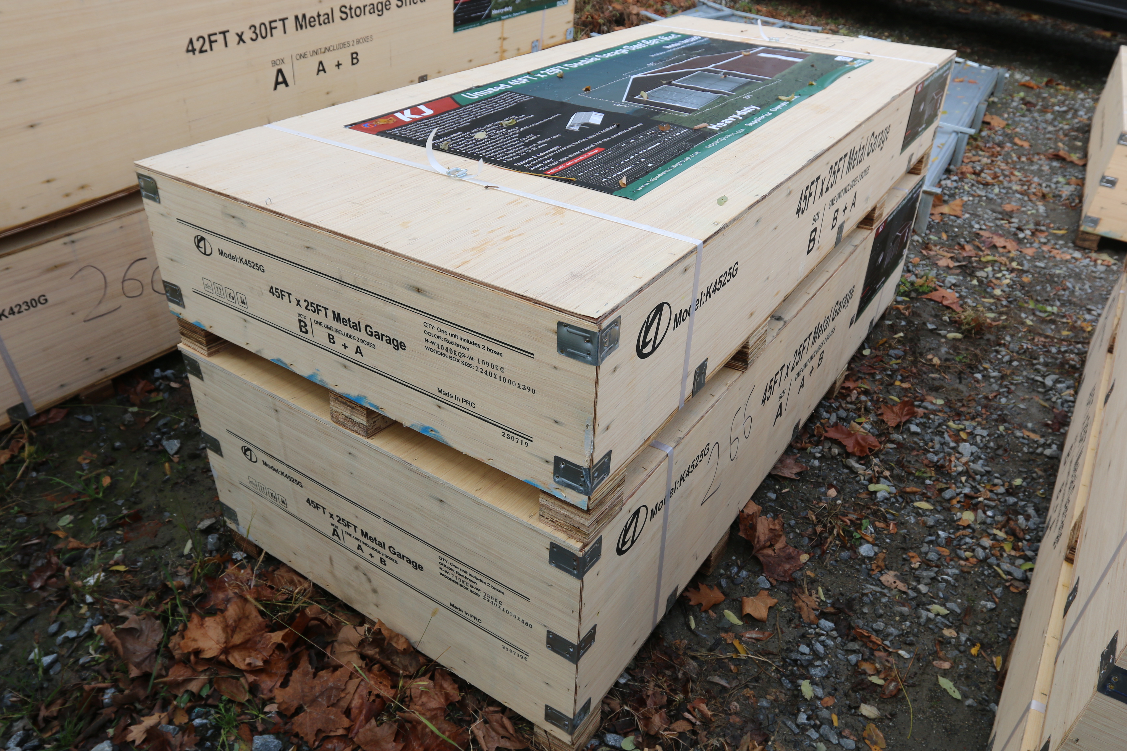 New 2025 KJ unused 20ftx30ft metal garage model K2030, in wood crate.