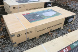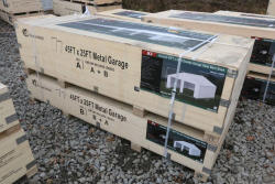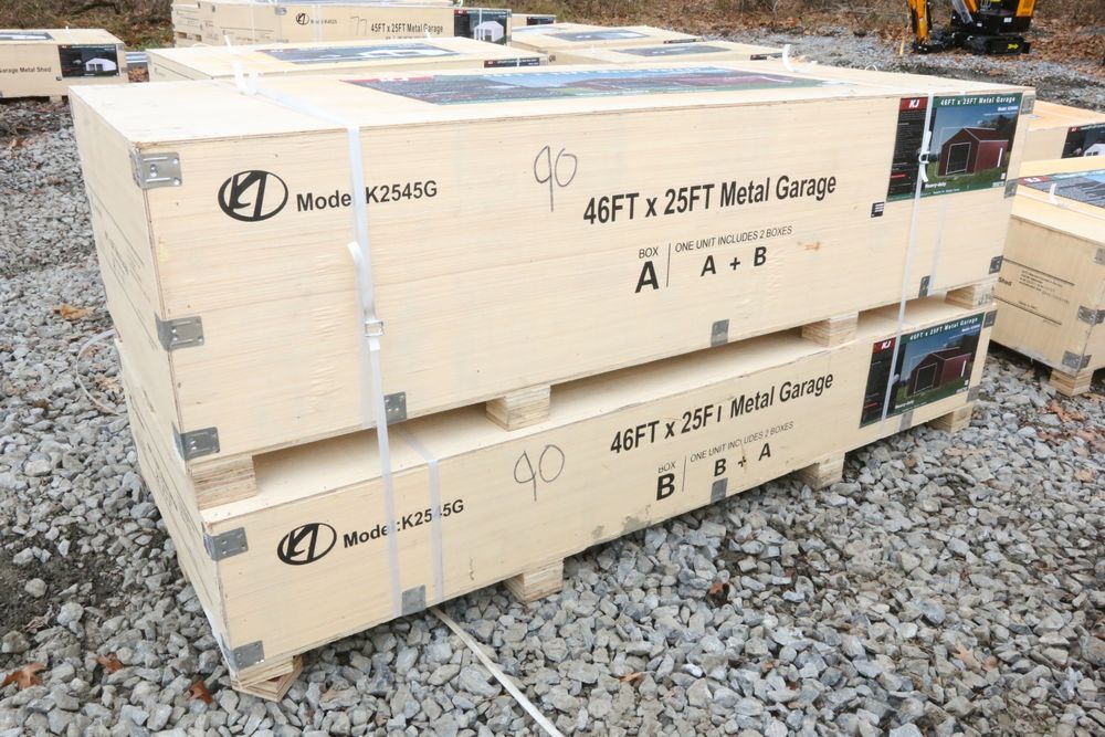 New KJ metal garage 46'Lx25'Wx15'H, model K2545G, in wood crate.