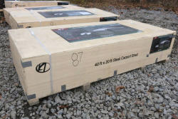 New livestock metal shed, 11'Tx12'Wx25'L, model K2512, in wood crate.