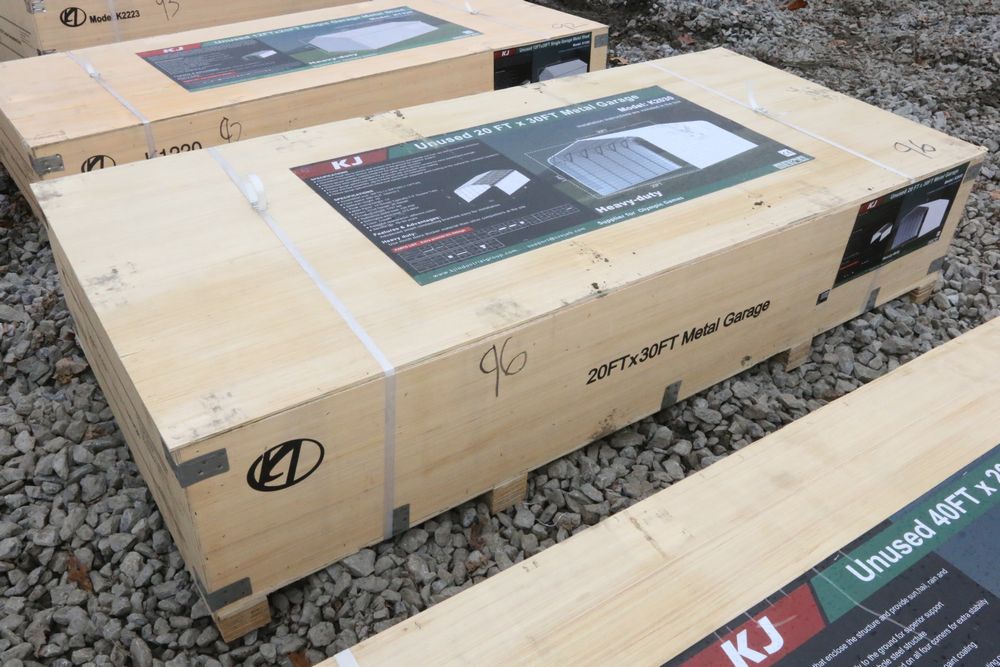 New KJ metal garage in wood crate, 30'Lx20'Wx 14'T, model K2030.