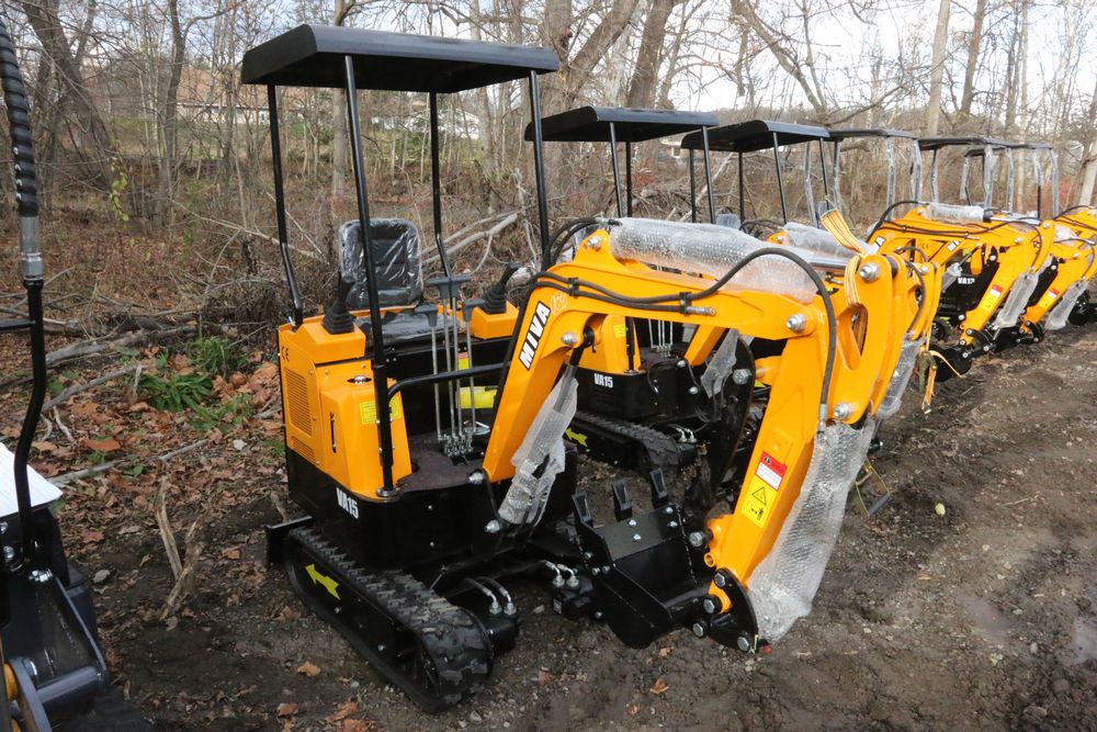 New MIVA mini excavator model: VA15, 13.5hp Briggs and Stratton gas engine, w/ thumb, Hydraulic Boom & Bucket Controls, bucket, with canopy and support bars. Hours reading less than one hour.