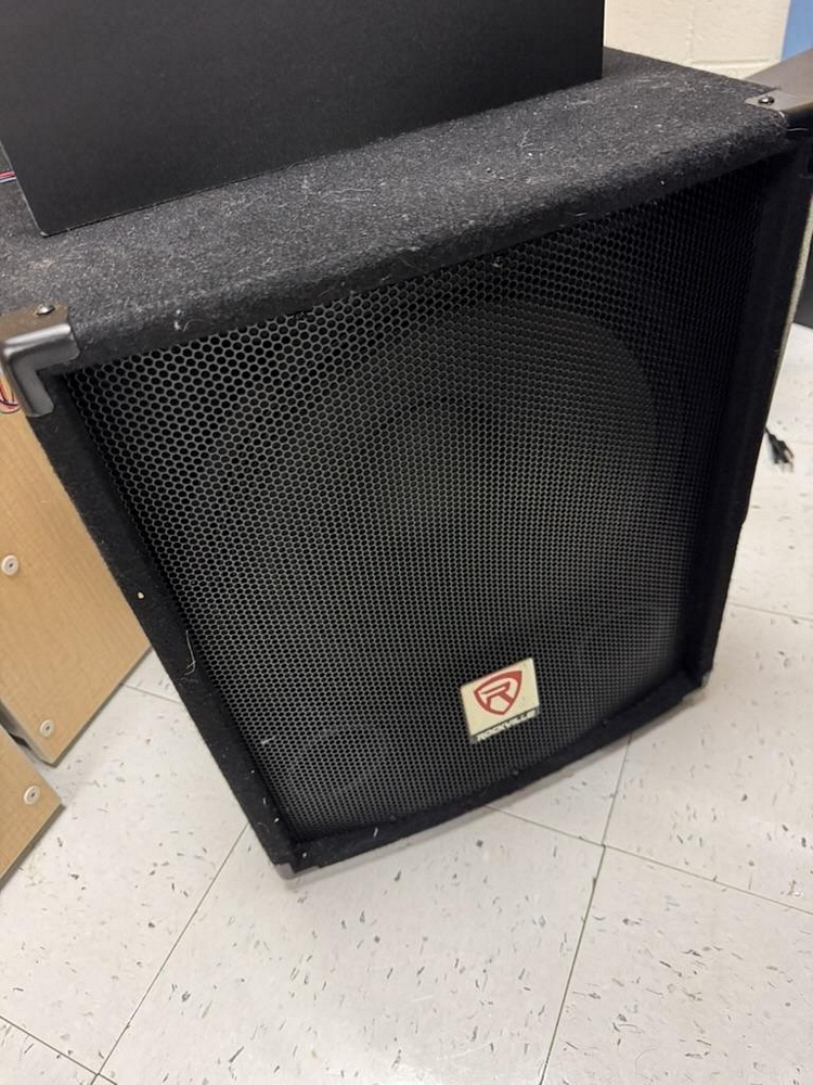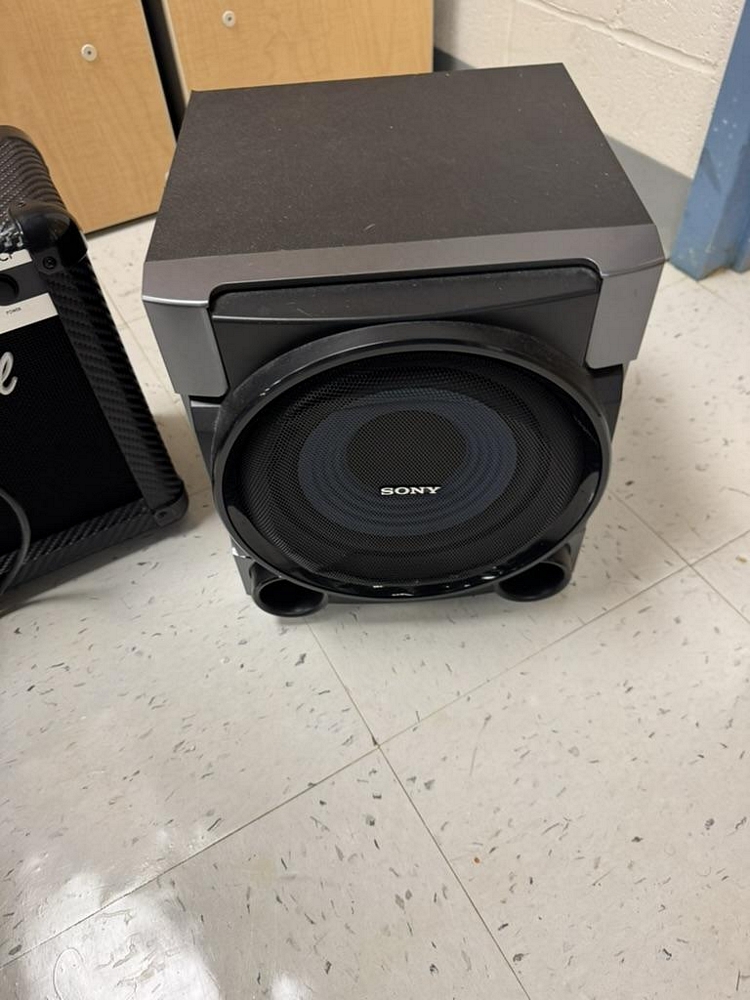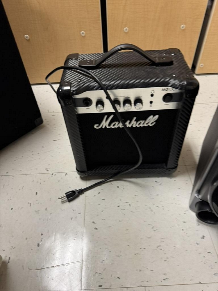Audio items including Rockville Monitor Speaker, Sony Stereo, Peavey monitors, Marshall amplifier. Also includes IBIVIC Saxophone Case.