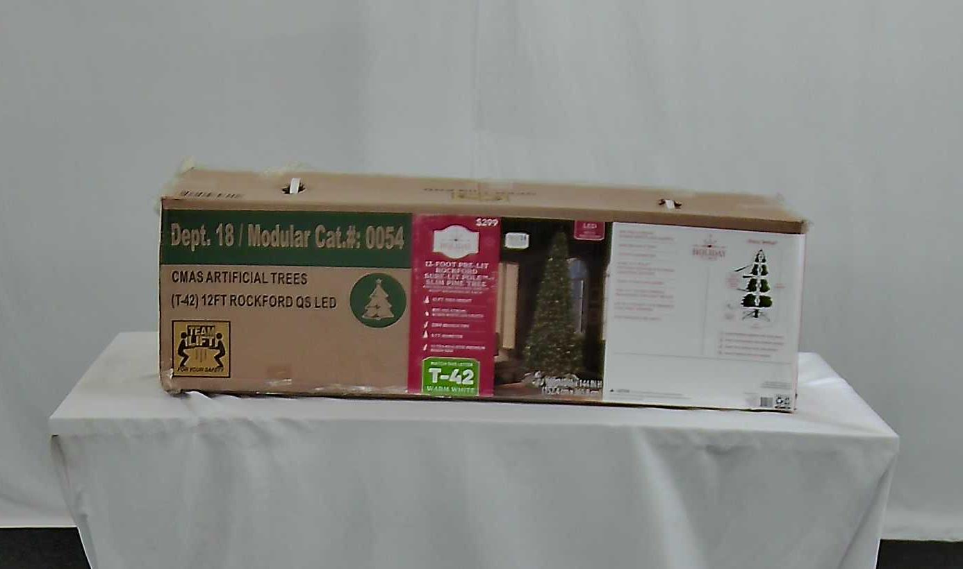 Holiday Time 12ft Pre-Lit Rockford Sure-Lit Pole Slim Pine Christmas Tree, 800 LED, Green