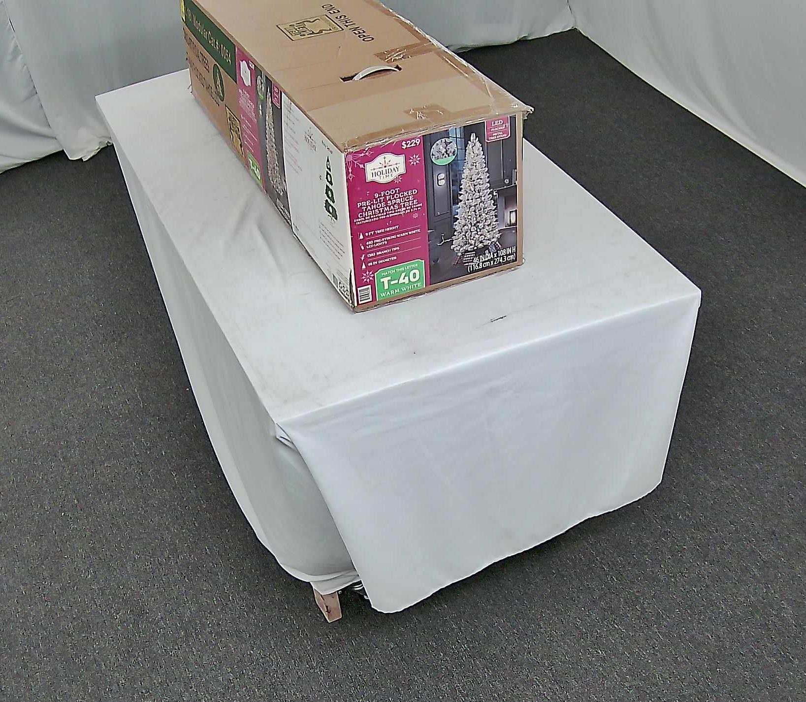 Items include 9' pre-lit flocked Colorado artificial Christmas tree; swivel bike wall mount; Rimaur Tempest Anime Cosplay sword; Athletic Works mini stepper machine; dog & cat Christmas-themed clothes; Macy's leather Hutchenson seven-piece power reclining sectional; Holiday Time 7.5' non-lit Donner Fir artificial Christmas tree; Steelcasae Uno Ergonomic office chair; Saatva natural latex hybrid queen mattress; set of black leather dining chairs; Macy's Mandeville rectangular dining table & chairs; Rachel Ray Home Cinema dining table; MOVOCA pilates board; Macy's Sadie four-piece upholstered side chair set; Christmas items: cool white mini lights, lighted garland, ornaments, tree toppers, gift boxes; gift bows, stockings, wrapping paper; A&A premium natural mahogany folding chess set; putting green indoor mat & more. Items are located in Pleasant Valley, NY.