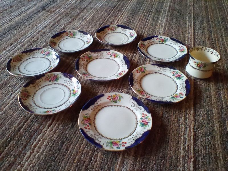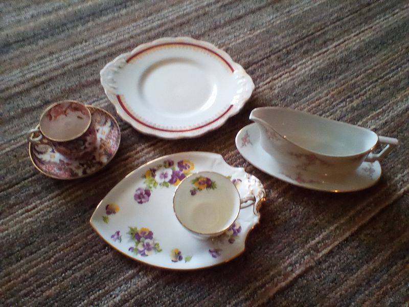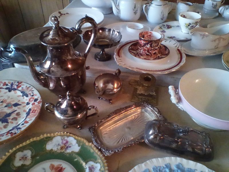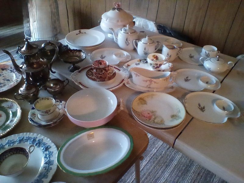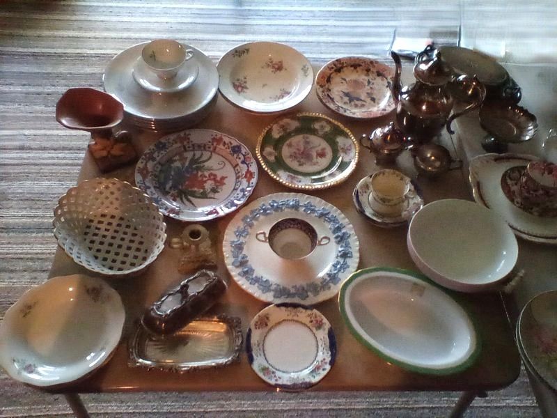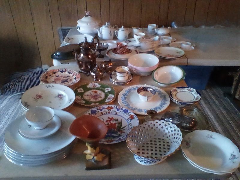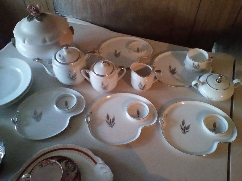 Quality Entertaining, featuring Roseville, Wedgwood; Spode, Others. Over forty pieces including platters; vases; coffee serving; luncheon plates; covered casserole; mostly Vintage. See photos for more details. Located in the basement.