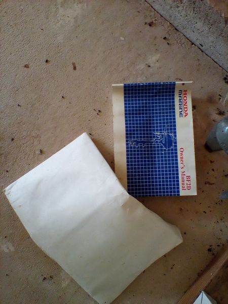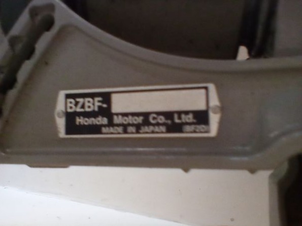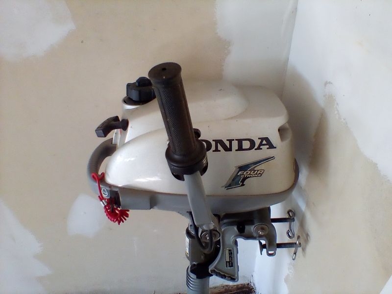 Outboard Boat Motor with Manual. Honda Four Stroke BF2D boat motor with manual. Located in the garage.