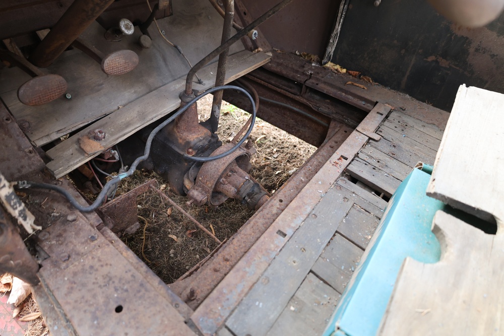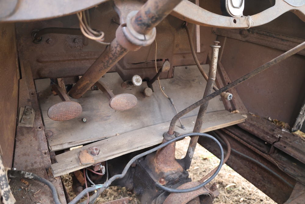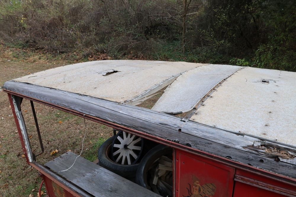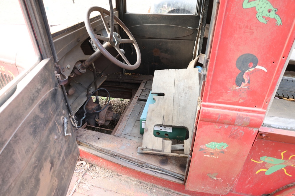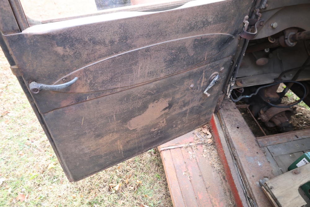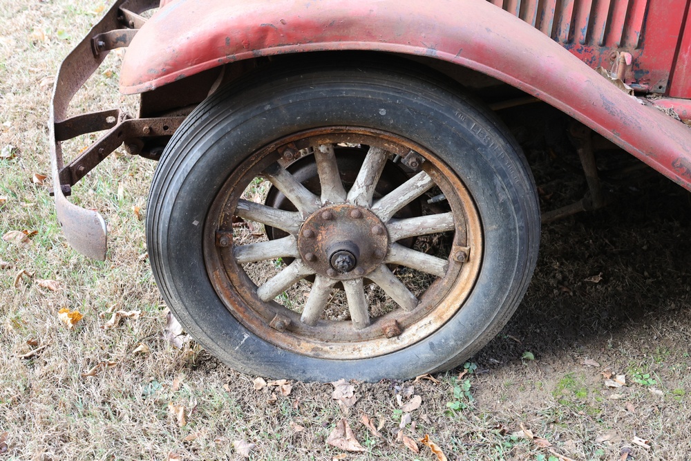 1925 Dodge Brothers truck, Series UF 1/2-ton. VIN: not present; serial plate shows number 8150. Odometer reading: not applicable. Equipped with an inline 4-cylinder gasoline engine and a manual transmission. Chassis plate indicates Series UF10-A/UF10-B with approximate chassis weight 1925 lbs. Body configured as an open-sided cab with wood plank flooring, steel fenders, and wooden-spoke wheels. Includes front-mounted headlamps, side-mounted spare wheel, and rear cargo platform. Seller reports the motor turned over when purchased last year. Bill of sale only.