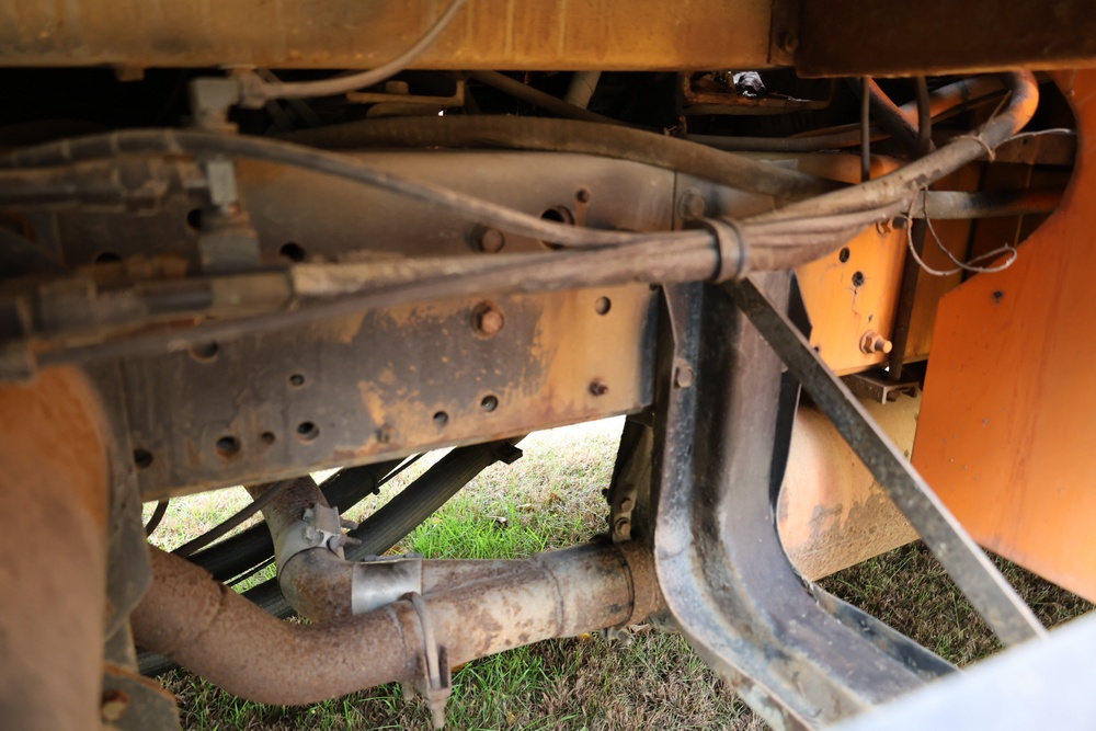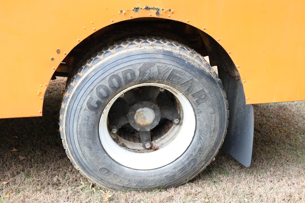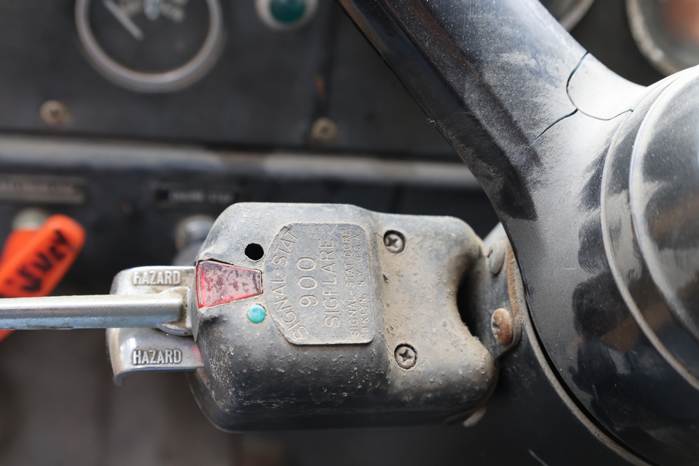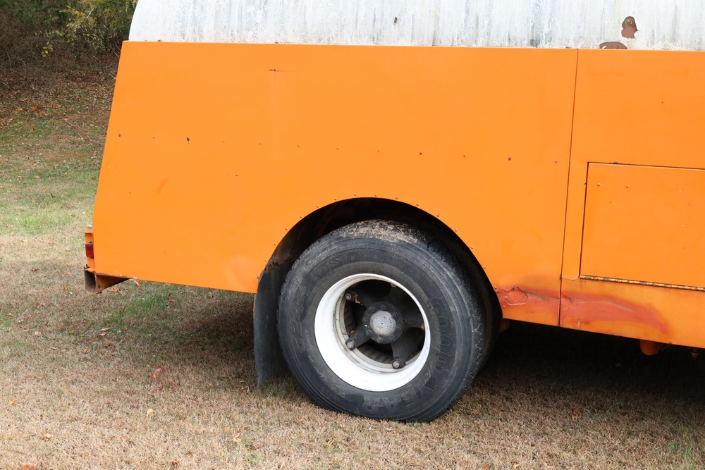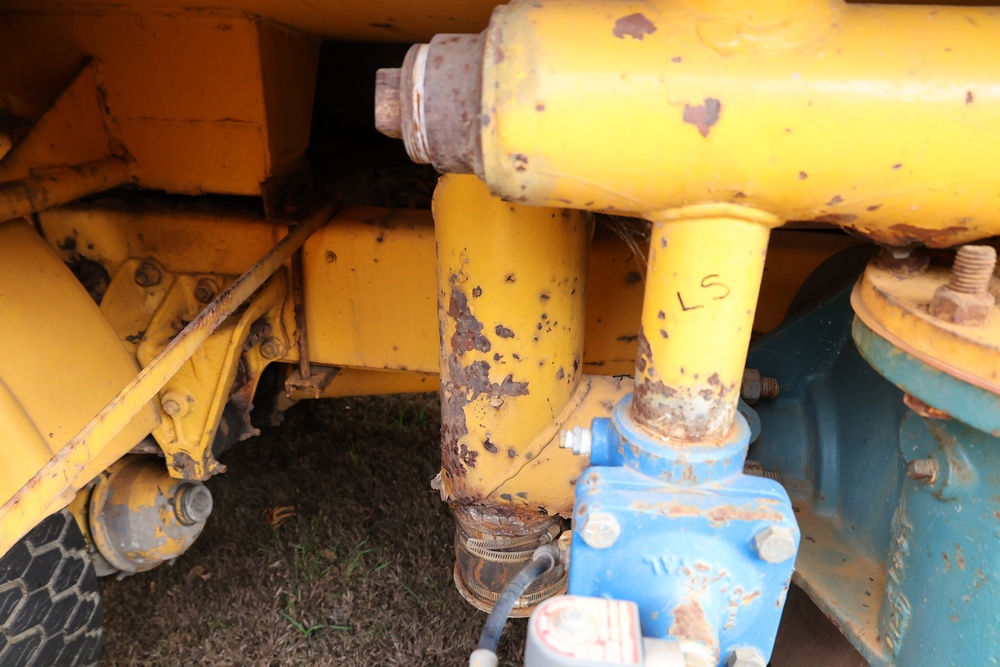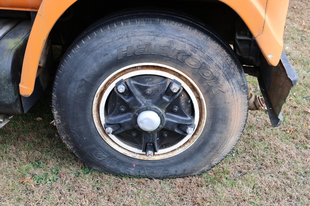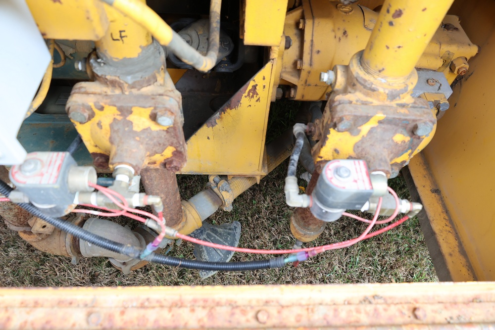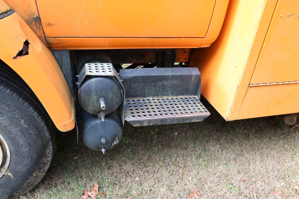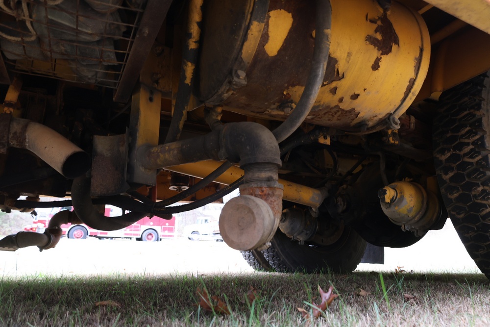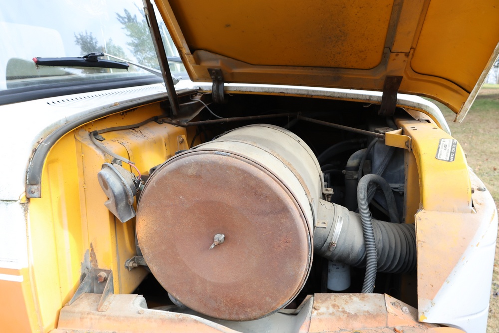 1978? International Harvester 2050A water truck. VIN: D1225FGB20957. Engine: 6V53 Detroit Diesel with Allison transmission. Body: single-axle cab-over truck equipped with an Etnyre hydrostatic flusher system and cylindrical water tank. Odometer reading: 023027. Features include an E.D. Etnyre & Co. Hydro model flusher system (model HYDRO, serial E1570) with a labeled tank capacity of 2200 gallons, interior Etnyre control panel with nozzle actuation switches and system pressure gauges. Data plate indicates a manufacturing date of 5-28-76 and wheelbase 166 inches. Seller reports: runs and drives, title and key available. Battery may need to be replaced to start.