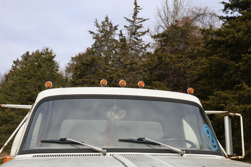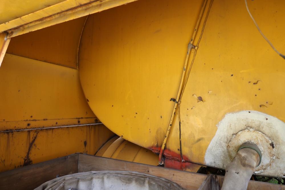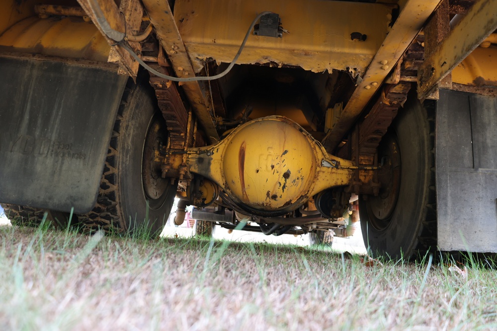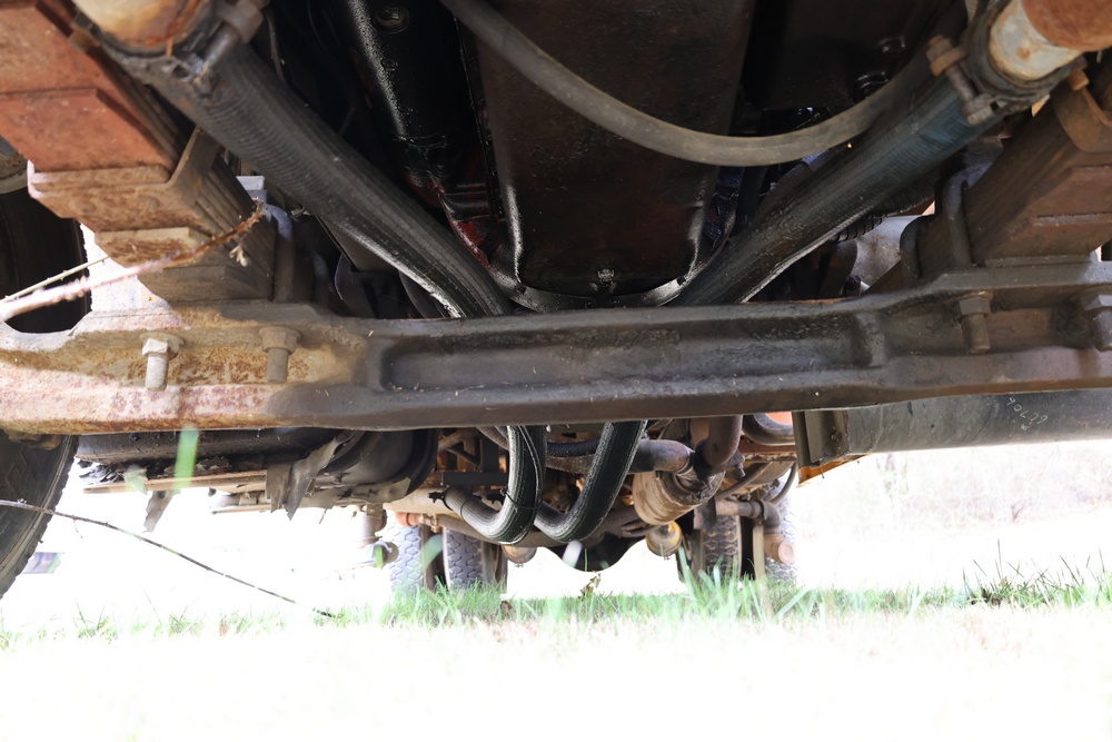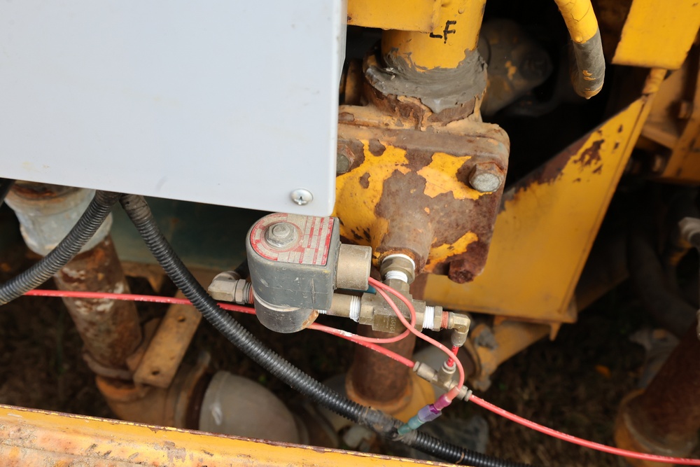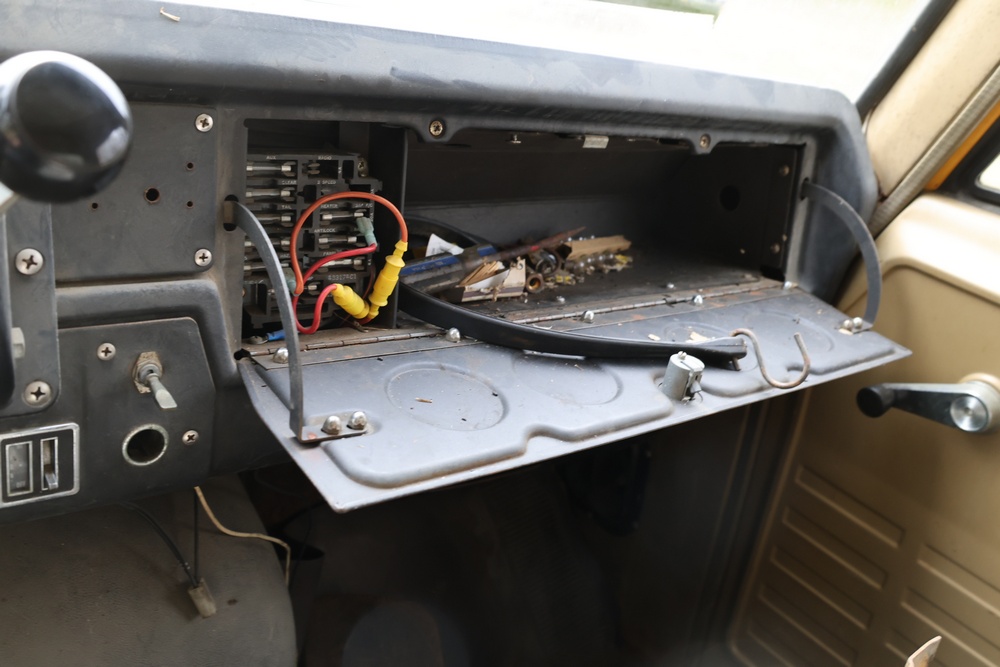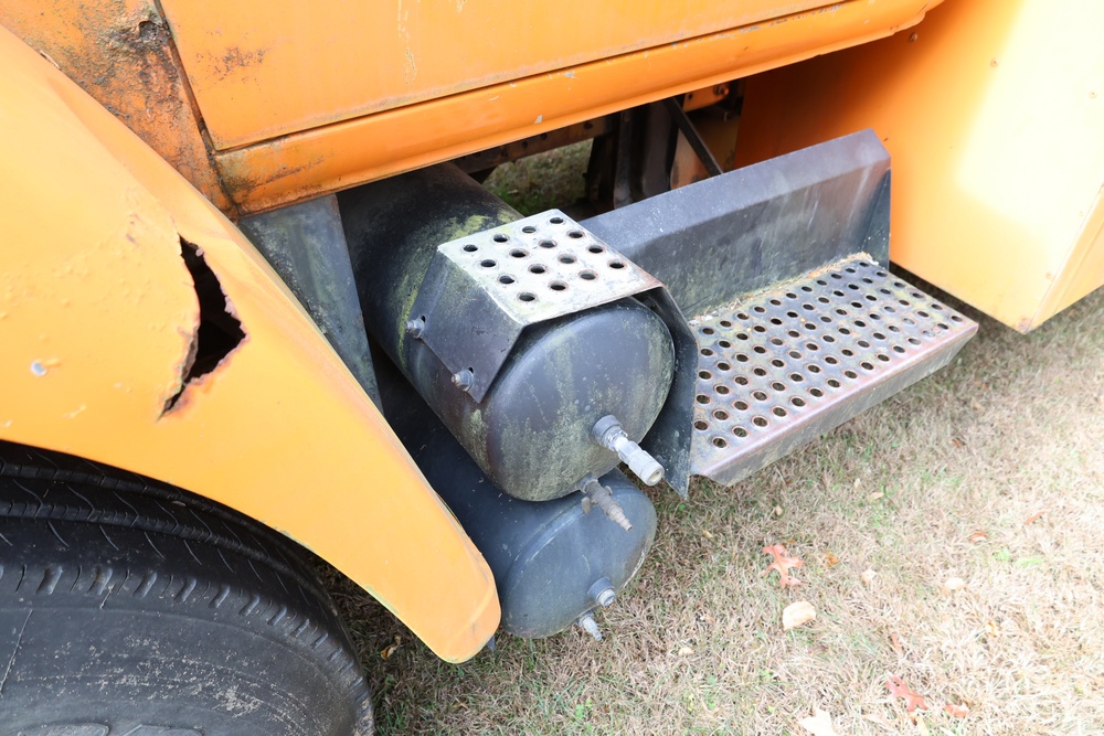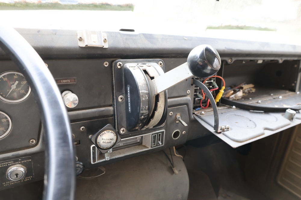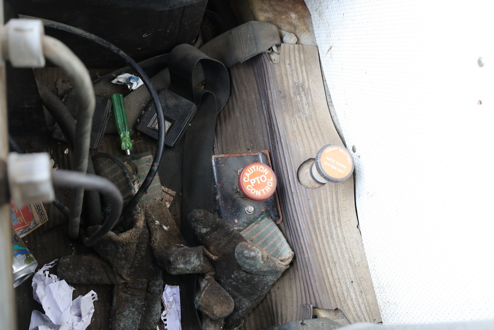1978? International Harvester 2050A water truck. VIN: D1225FGB20957. Engine: 6V53 Detroit Diesel with Allison transmission. Body: single-axle cab-over truck equipped with an Etnyre hydrostatic flusher system and cylindrical water tank. Odometer reading: 023027. Features include an E.D. Etnyre & Co. Hydro model flusher system (model HYDRO, serial E1570) with a labeled tank capacity of 2200 gallons, interior Etnyre control panel with nozzle actuation switches and system pressure gauges. Data plate indicates a manufacturing date of 5-28-76 and wheelbase 166 inches. Seller reports: runs and drives, title and key available. Battery may need to be replaced to start.