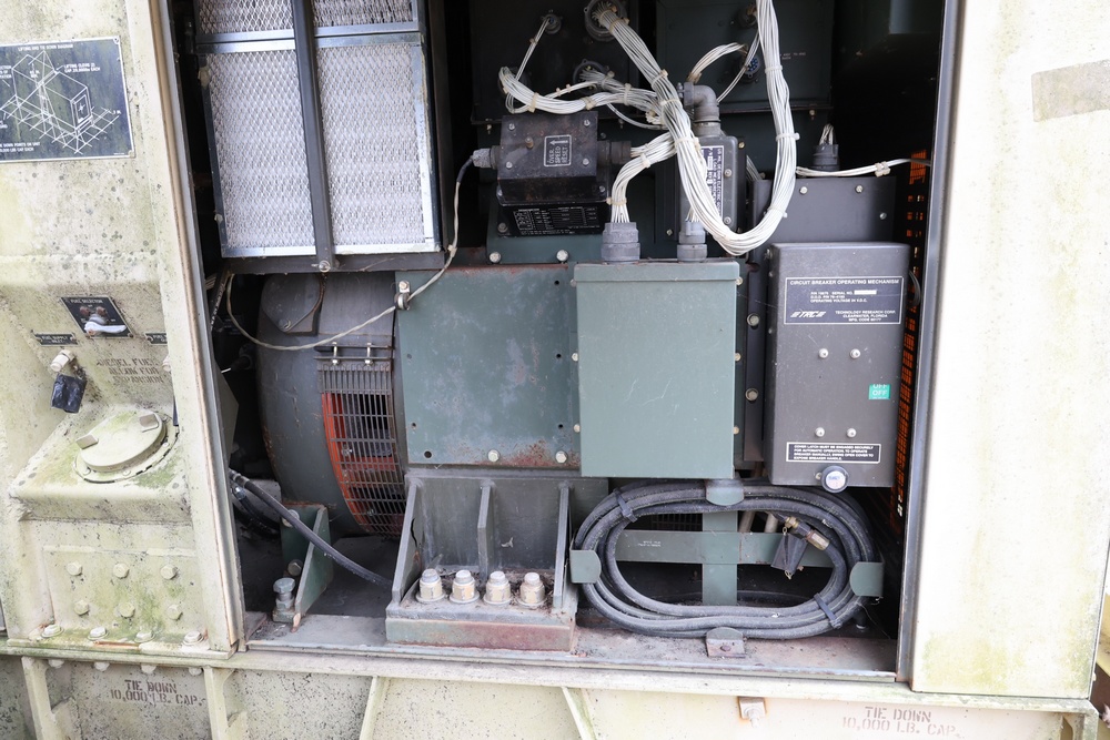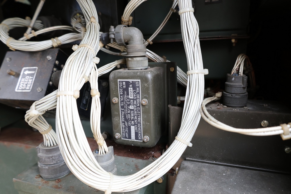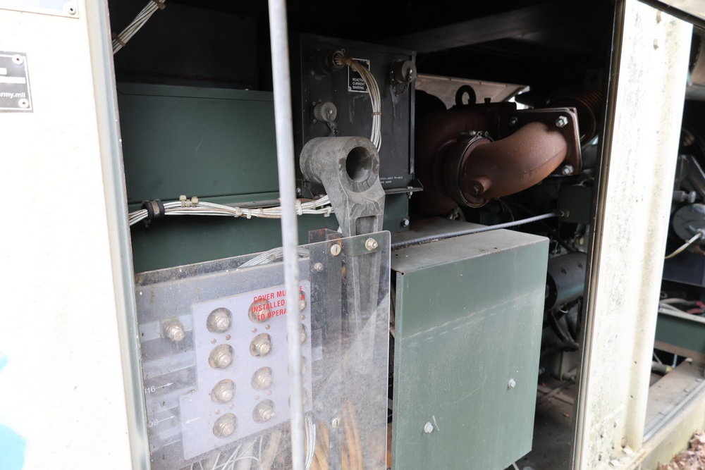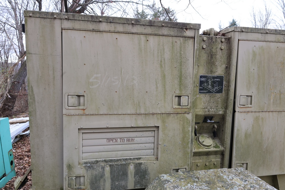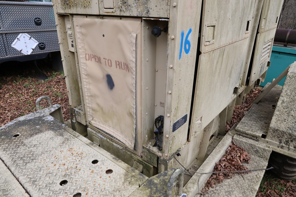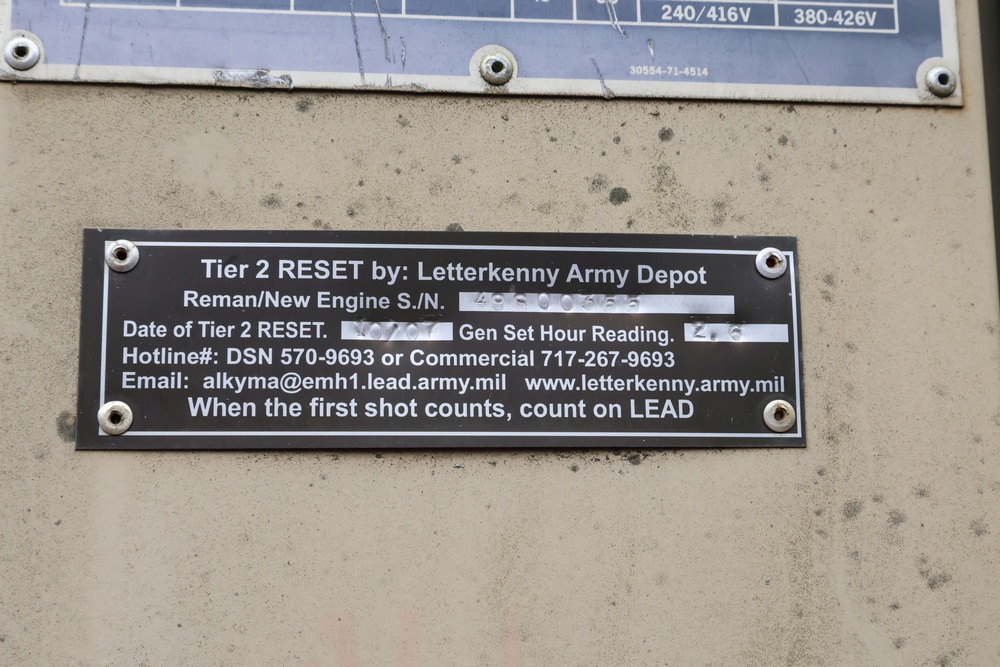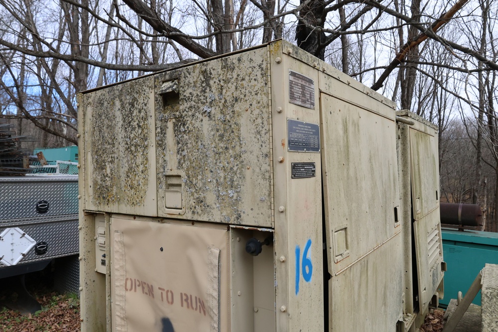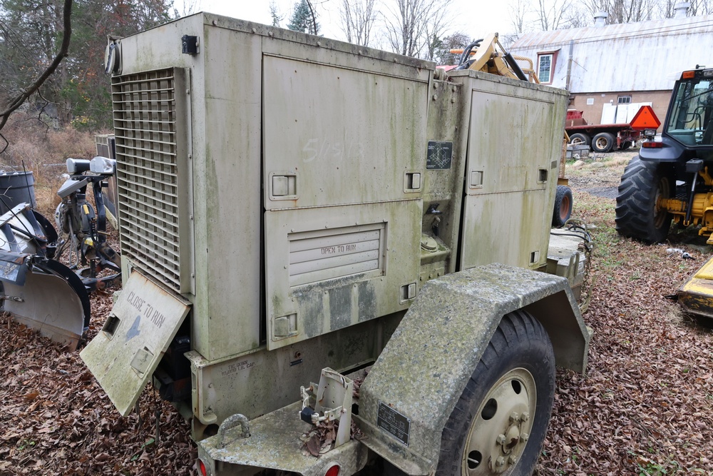 Libby Corporation MEP-007B diesel generator set, serial RZ01413, trailer-mounted, rated 100 kW with selectable 50/60 Hz output, and multi-voltage three-phase capability including 120/208 V and 240/416 V (as per labels). With a Cat 3306 engine.