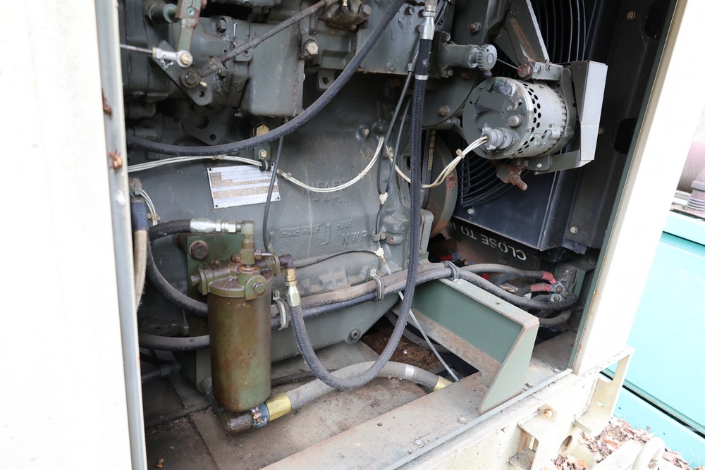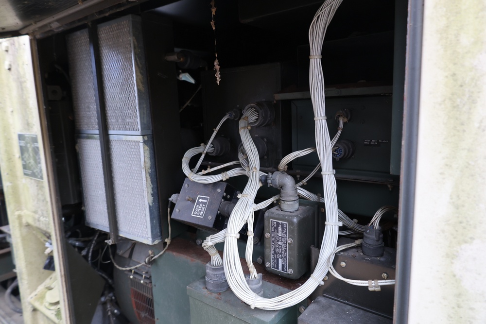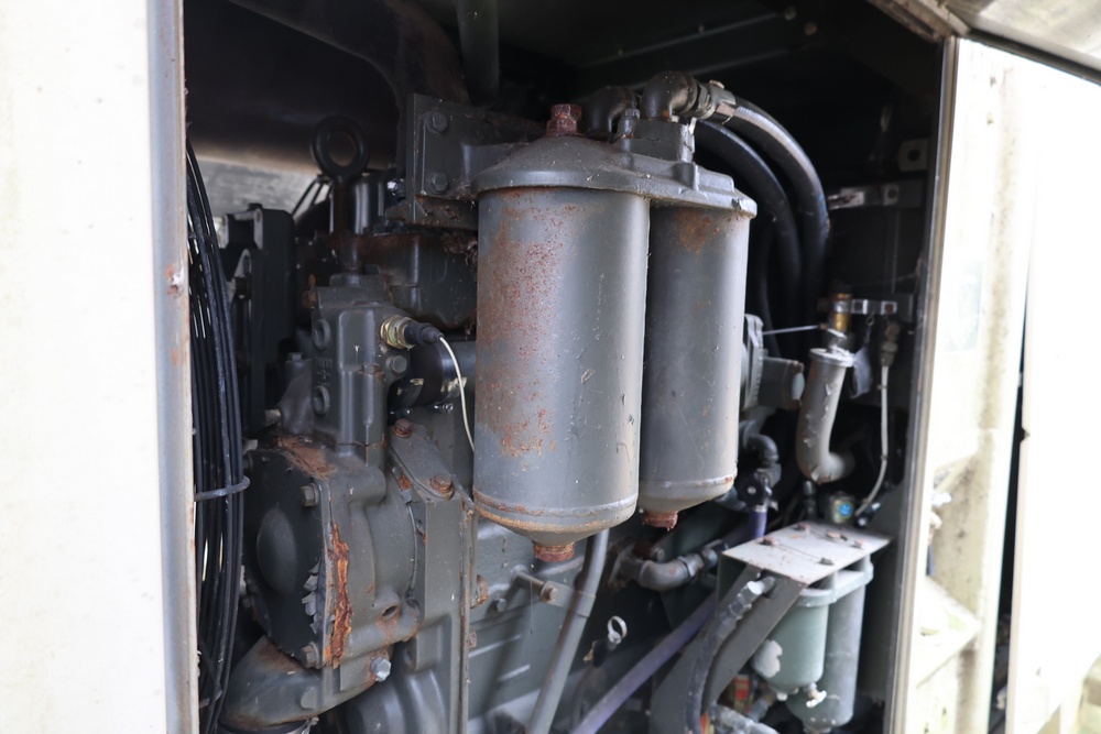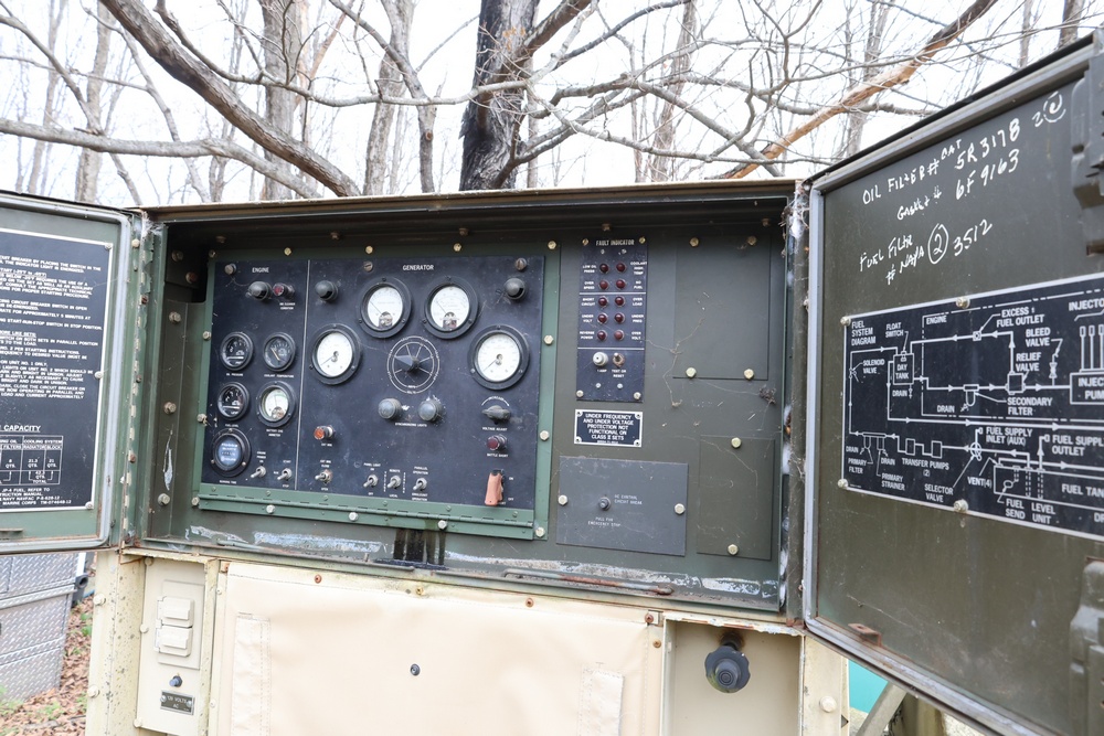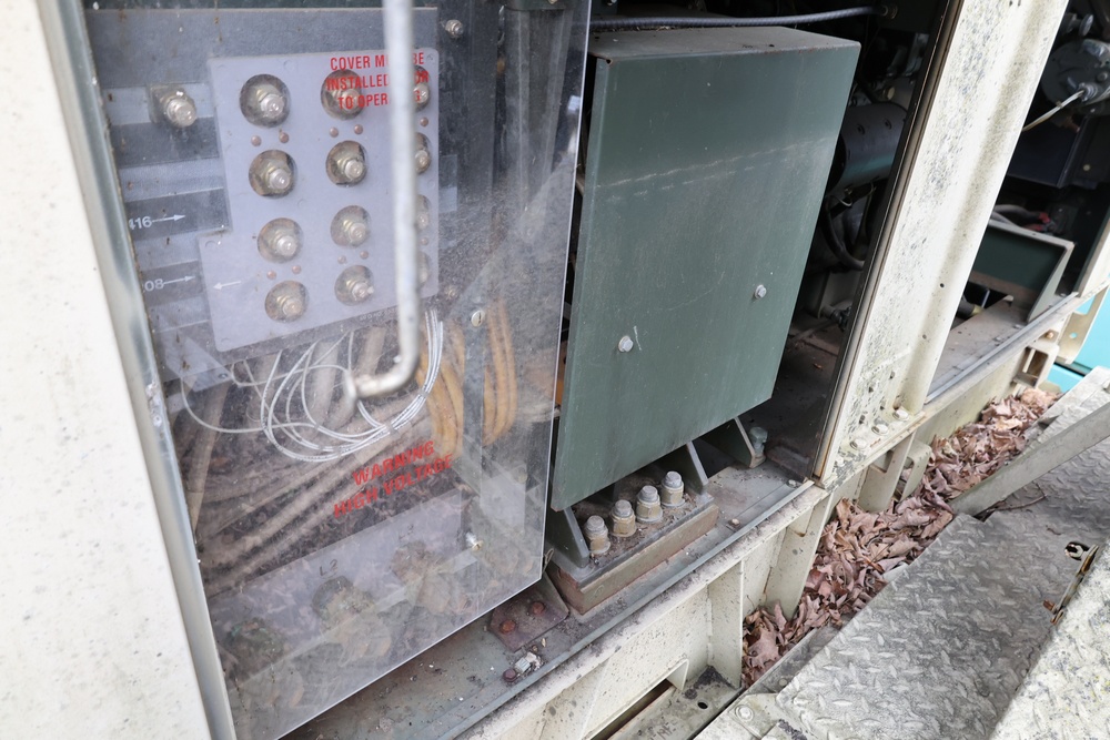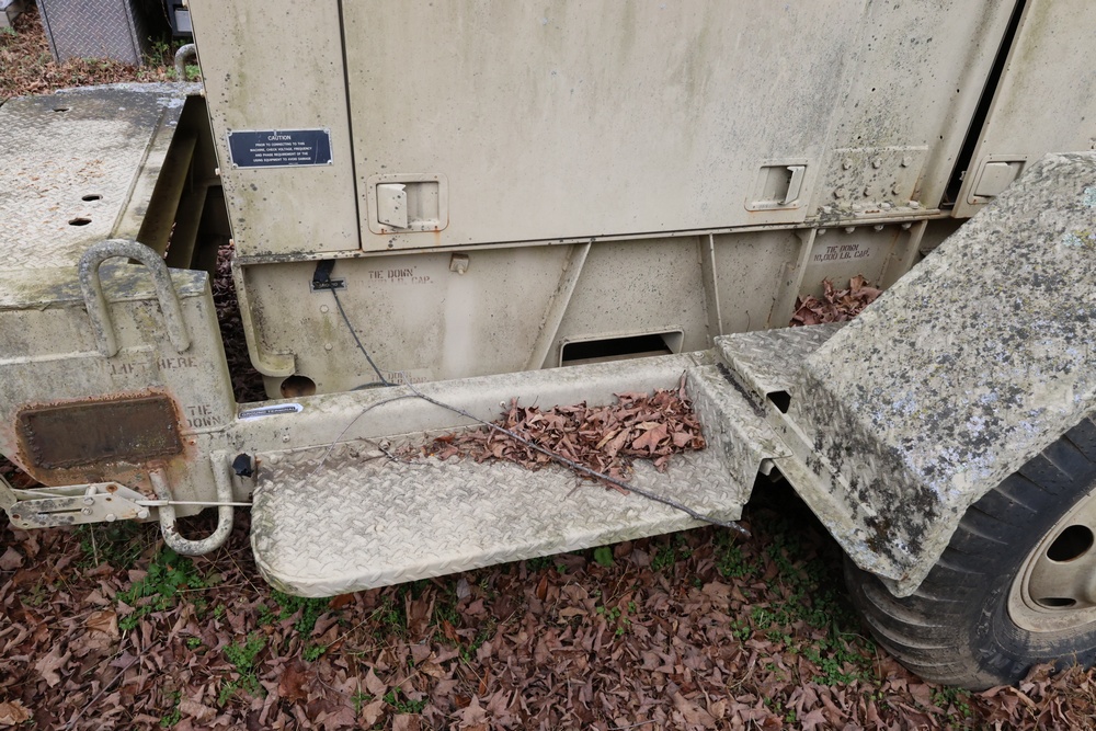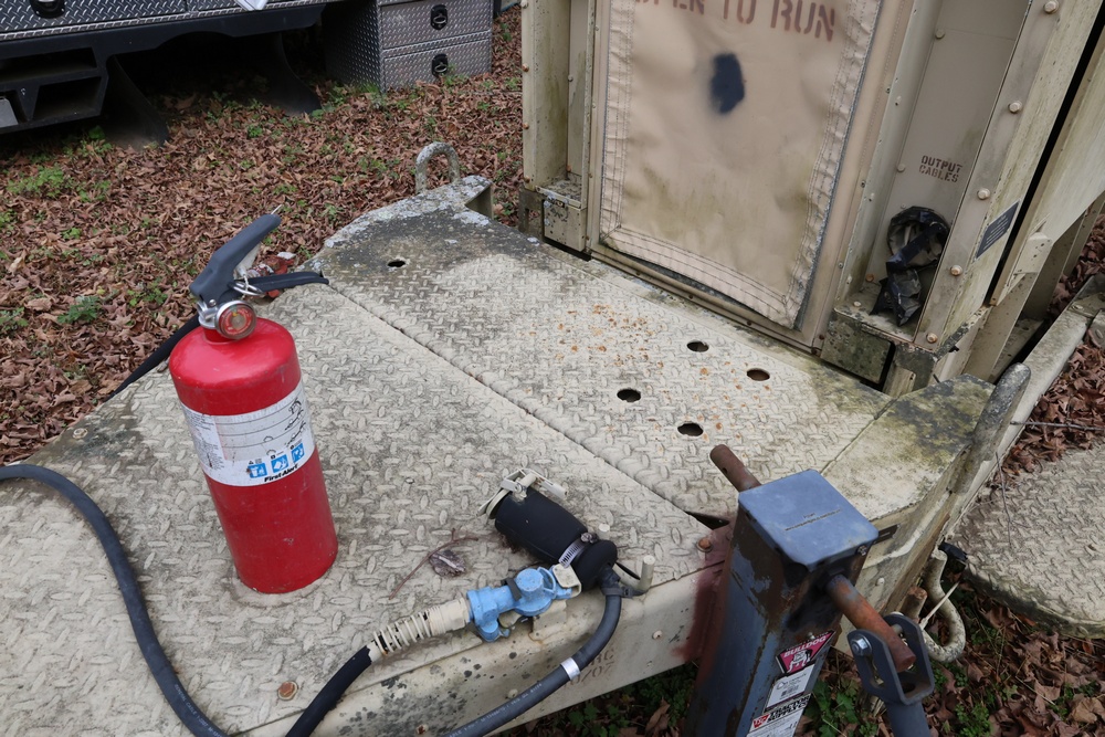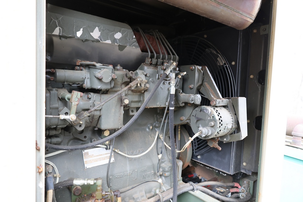 Libby Corporation MEP-007B diesel generator set, serial RZ01413, trailer-mounted, rated 100 kW with selectable 50/60 Hz output, and multi-voltage three-phase capability including 120/208 V and 240/416 V (as per labels). With a Cat 3306 engine.