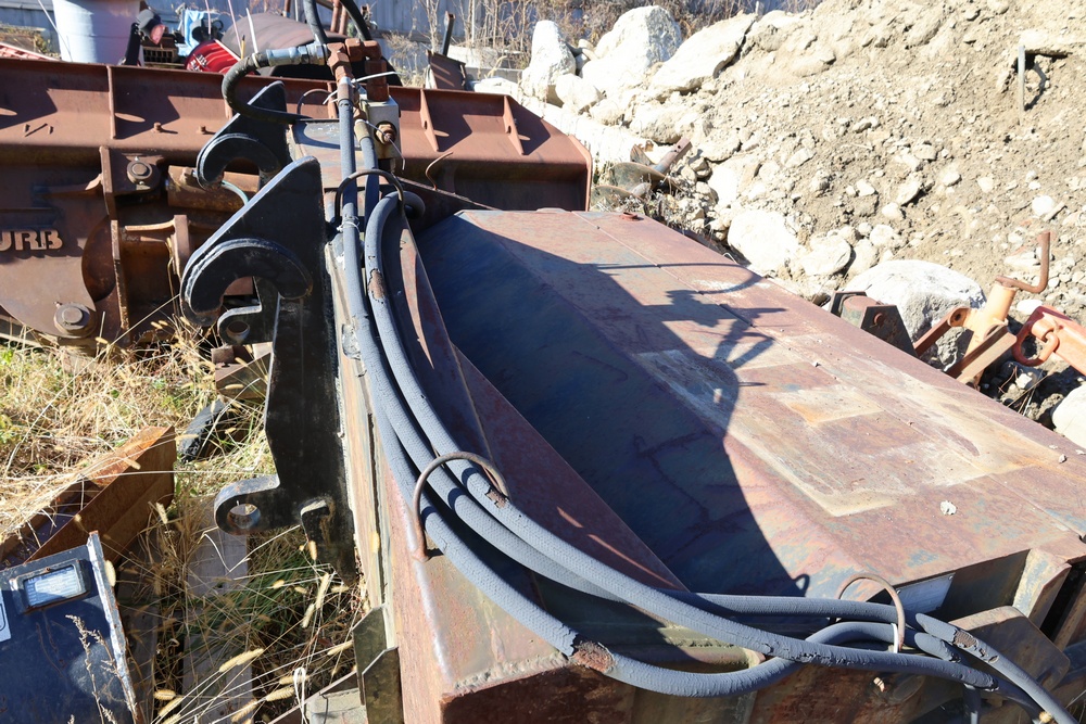 Sweeper attachment with JRB quick connector. Was previously used with a John Deere TC54 3 yard wheel loader.