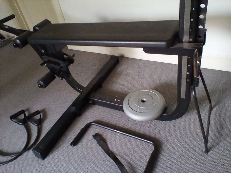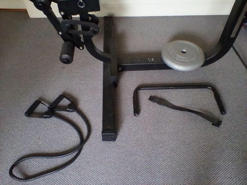 Soloflex Exercise Machine. All-in-one Soloflex machine (model number not found, see photos for details). May req uire dismantling. Loc on 3rd fl. Bring help to safely remove.