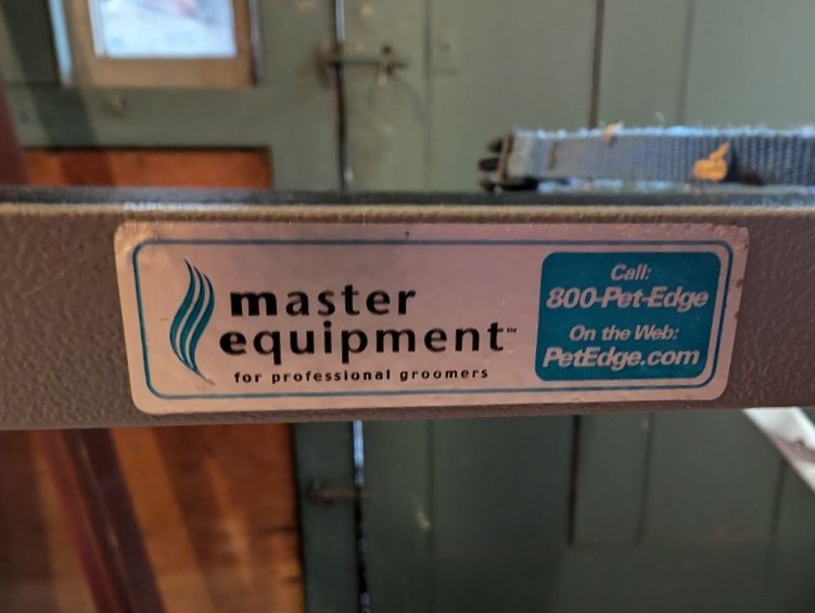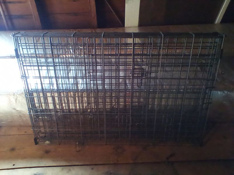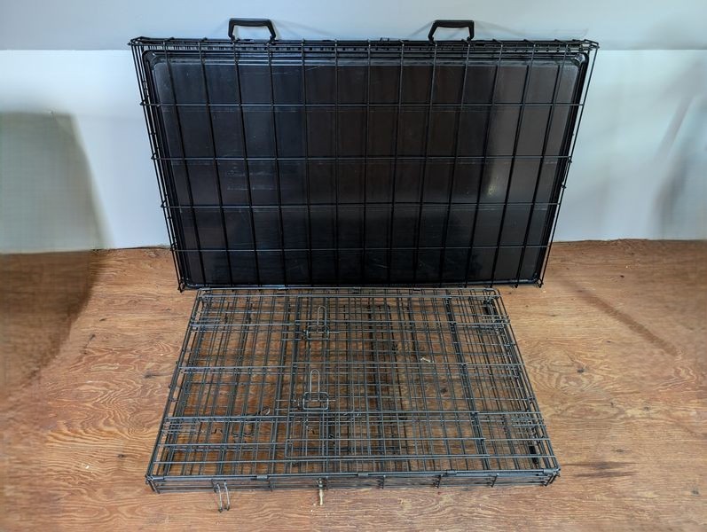 Dog Washing Station, Crates. Folding dog washing table with attach, 3'Wx2'Dx 32"H; three dog crates: (1) lg, (2) med. Loc in basement and garage walk up.