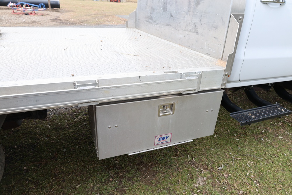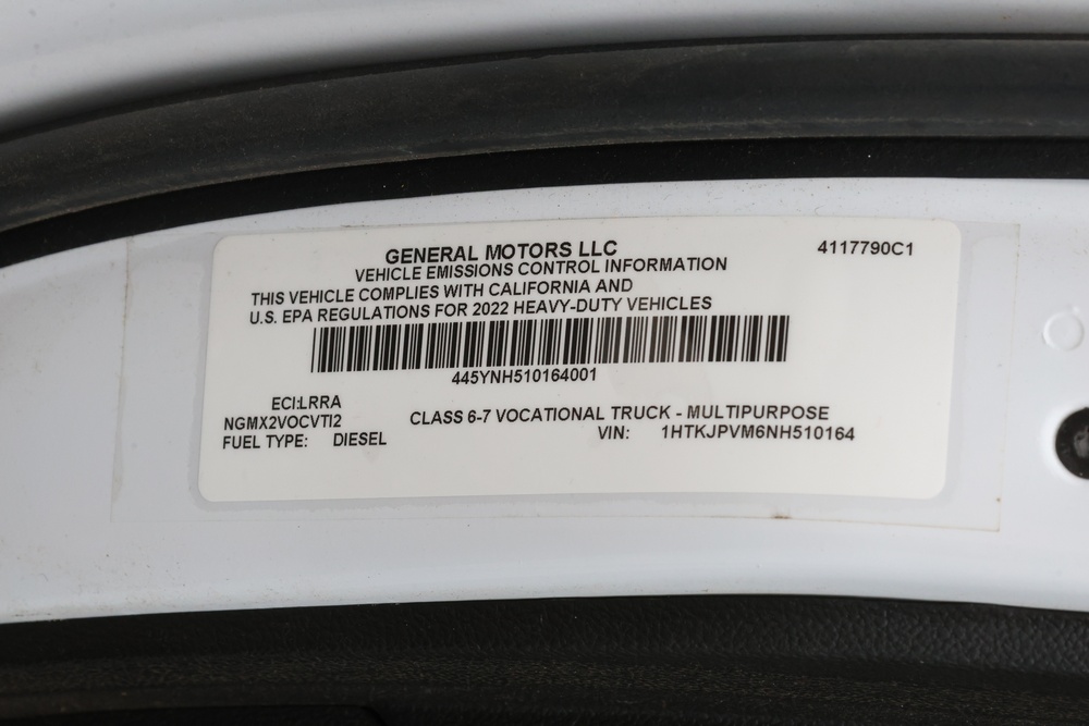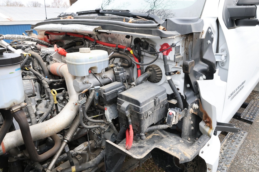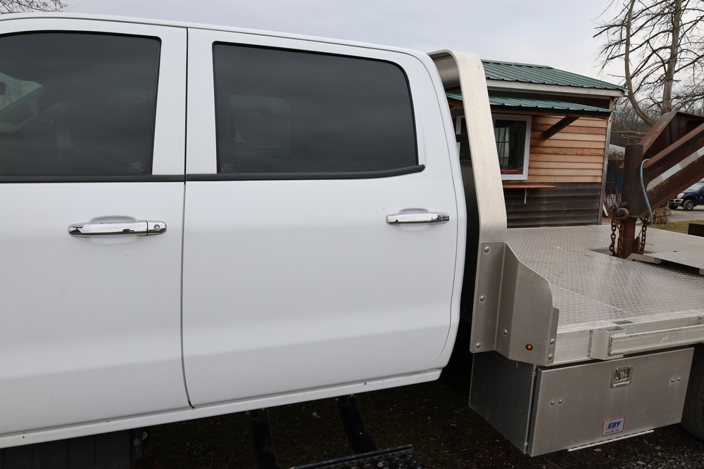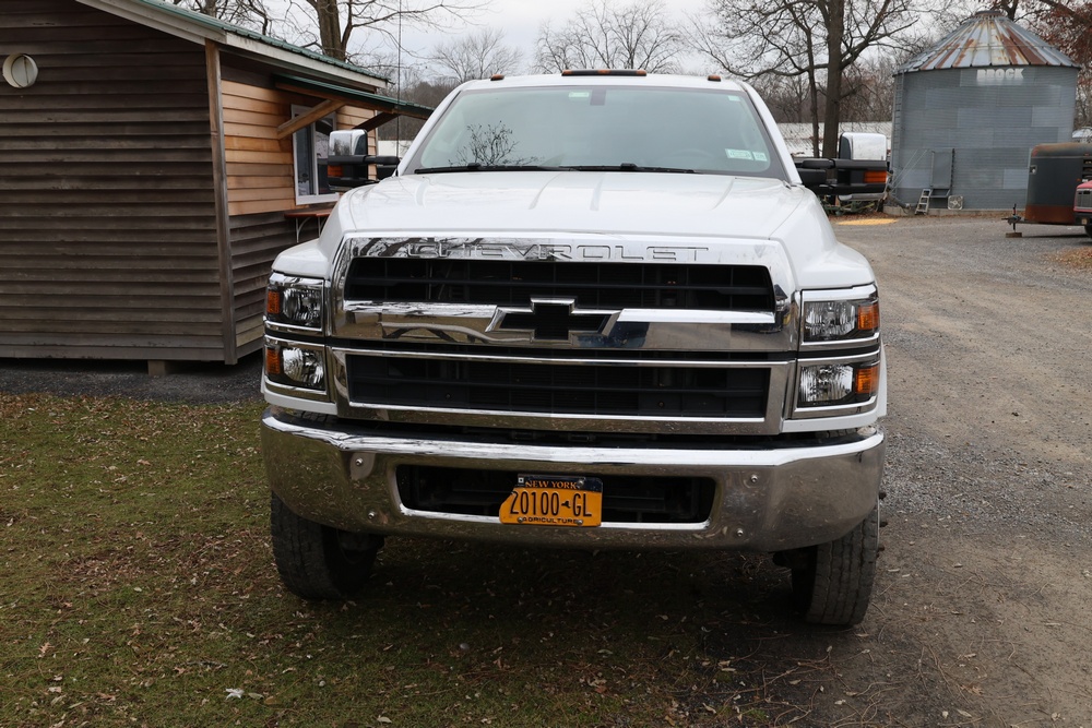 2022 Chevrolet Silverado 6500HD crew-cab flatbed truck. VIN: 1HTKJPVM6NH510164. Engine: 6.6L diesel, automatic transmission, 4WD. Odometer reading: 33617 miles. Features include dual rear wheels, aluminum Eby flatbed, running boards, touchscreen audio display. Runs and drives. Title and key available. NOTE: This item has a lien which will be satisfied upon payment for purchase in the auction. The vehicle(s) listed in this event will have the lien and title released upon payment directly to the secured creditor once paid for by the purchaser.