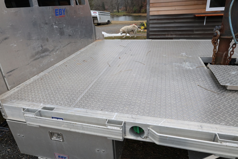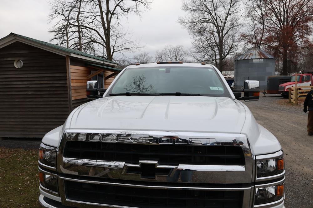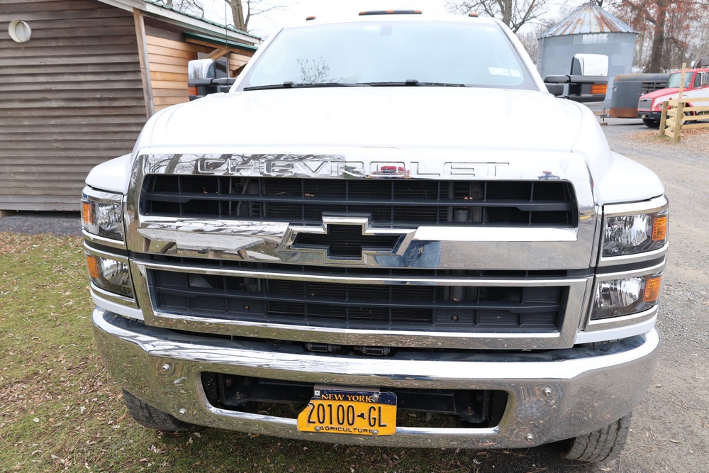 Items include 2022 Chevrolet Silverado 6500HD crew-cab flatbed truck; 2011 Ford F-550 Super Duty flatbed dump truck & 2003 Rolls Rite 35' gooseneck equipment trailer. Items are located in Rhinebeck, NY.