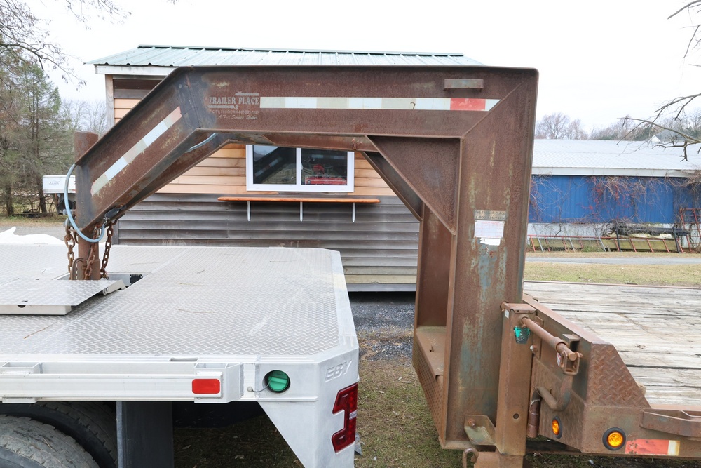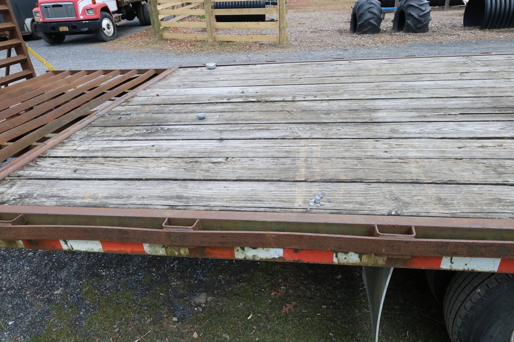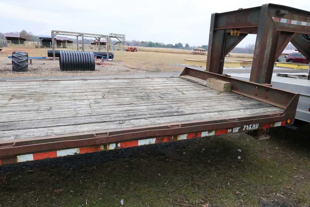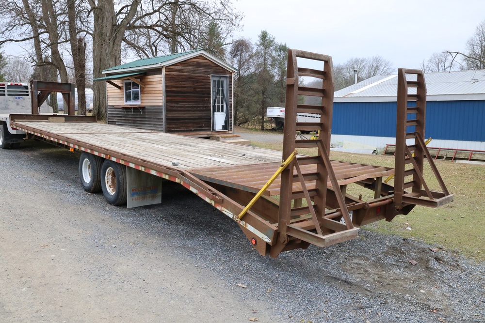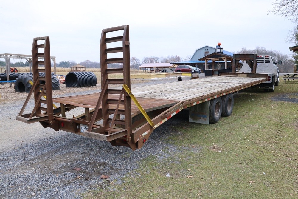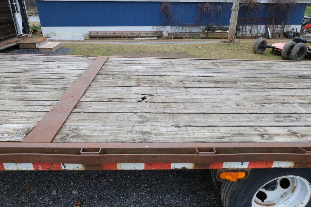 Items include 2022 Chevrolet Silverado 6500HD crew-cab flatbed truck; 2011 Ford F-550 Super Duty flatbed dump truck & 2003 Rolls Rite 35' gooseneck equipment trailer. Items are located in Rhinebeck, NY.