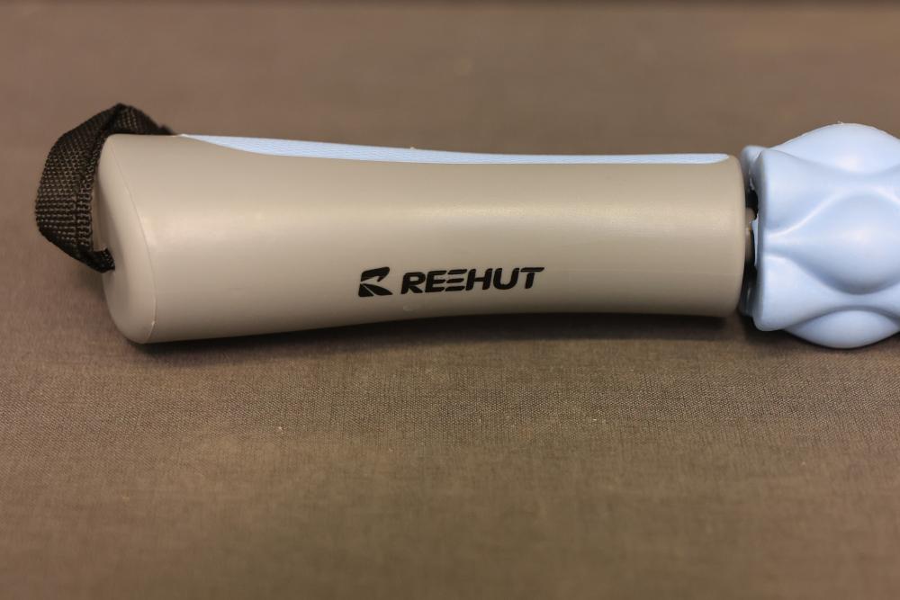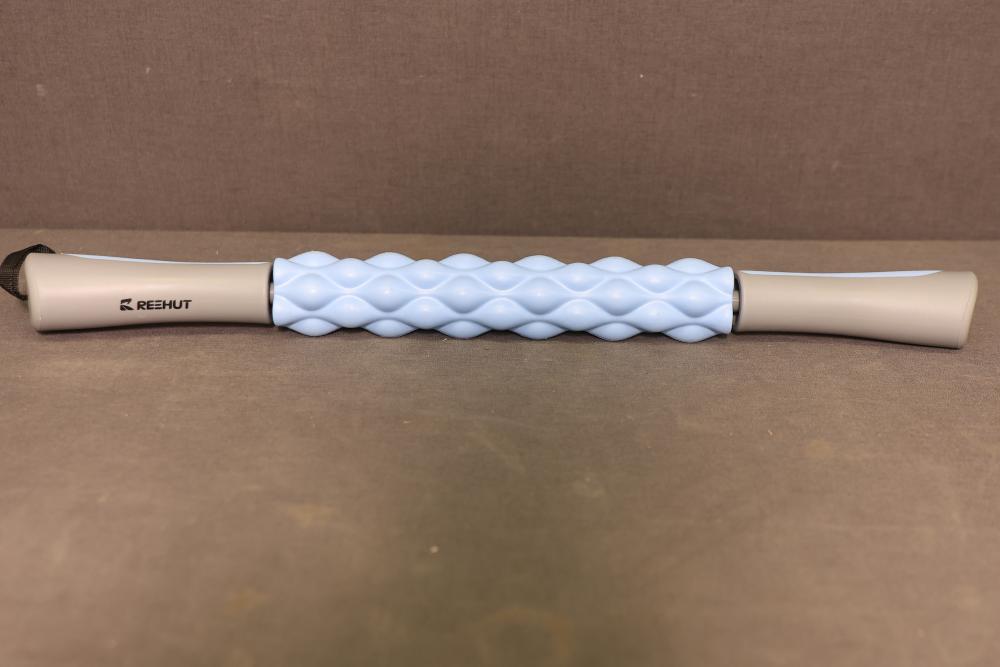 Reehut Muscle Roller Stick in Blue, designed for muscle relief and recovery. Features a lightweight design with ergonomic handles and a textured rolling surface for effective muscle massage. In original packaging, appears unused. Pickup only.