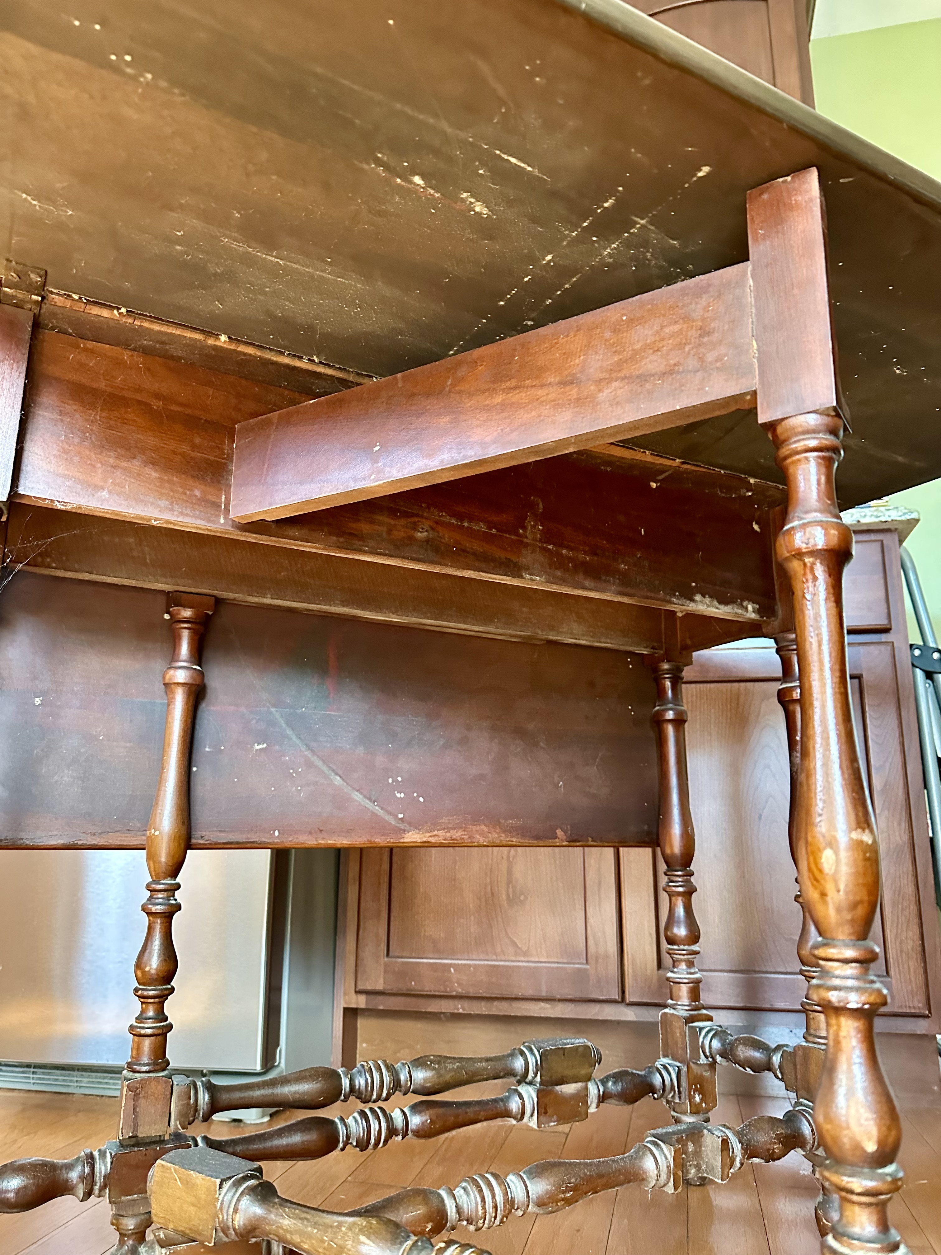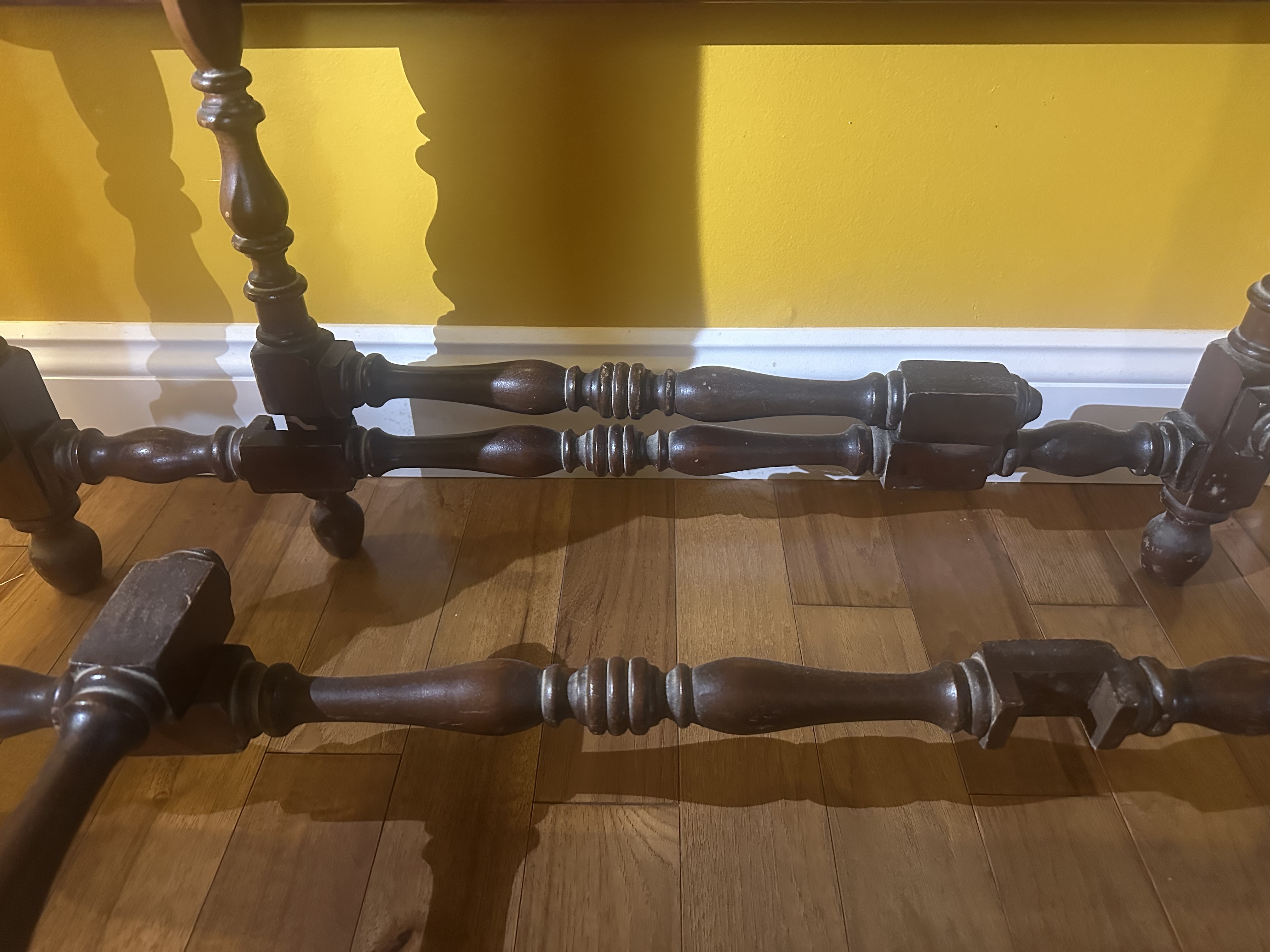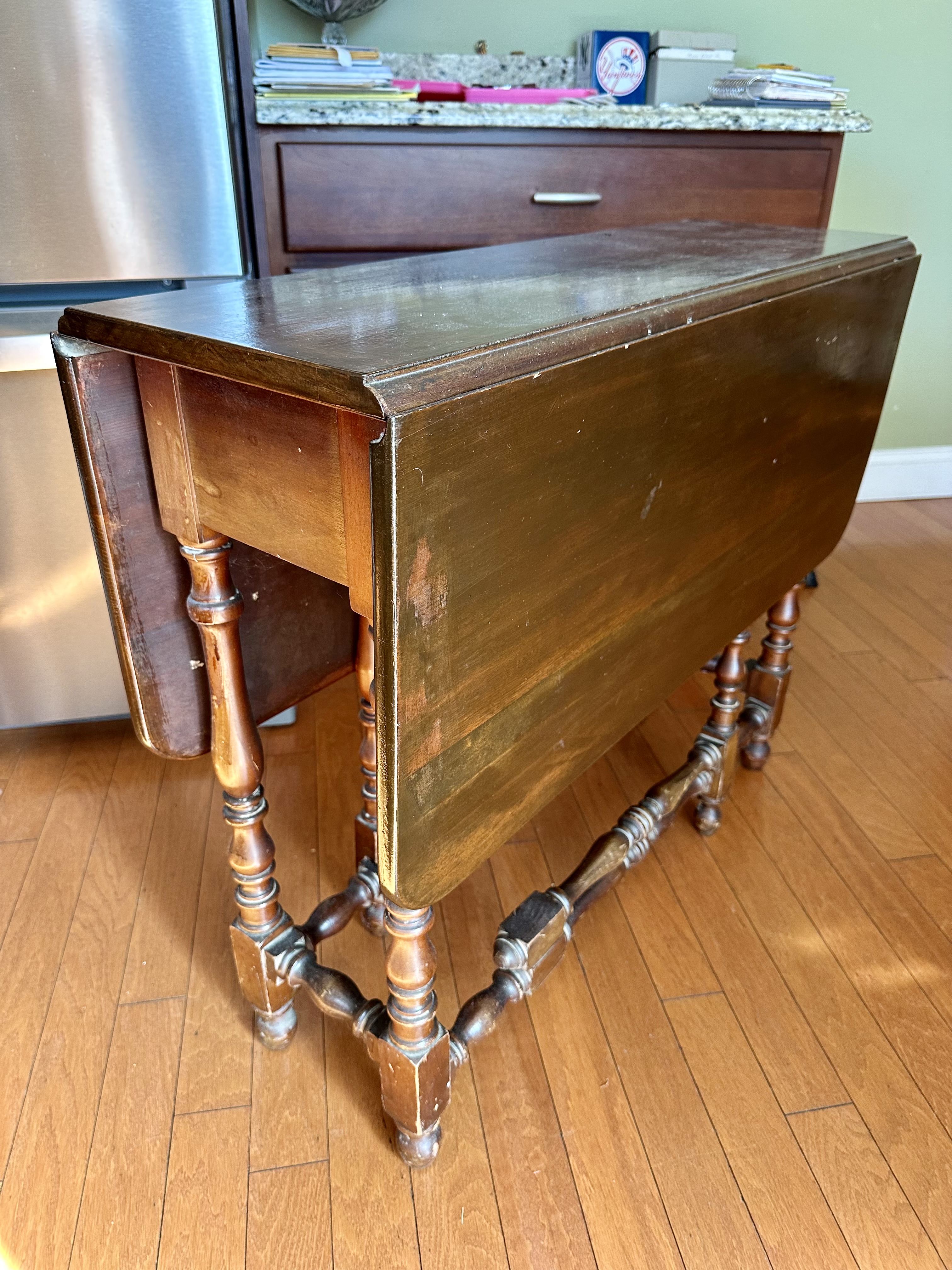 Early Revival / Queen Ann style Gate Leg Drop Leaf Table. Mahogany or mahogany finish. Turned legs and older vintage hardware. L 40.5 x H 30 x W 36