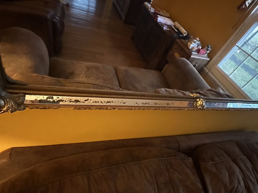 Items include LA-Z Boy remote control electric leather recliner; Chris Madden for JCPenney 10 place settings stoneware; Early American style matching pair of solid cherry wood hutch; American Colonial-Revival style drop-leaf server/console; vintage cherry drop-leaf dining table w/leaves, Queen Anne feet; tapestry sofa bed & love seat; four-piece Mediterranean bedroom set; Broyhill suede-like overstuffed love seat; metal lamp; vintage wall mirror & more. Items are located in Highland, NY.