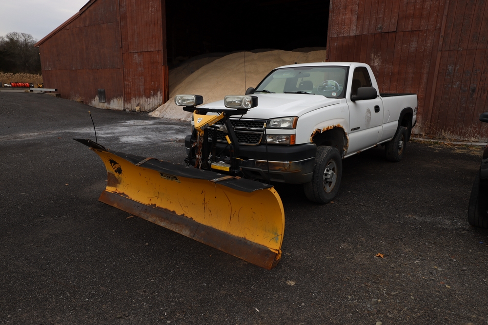 Items include 2008 Chevrolet Silverado 3500HD Dump Truck, 1990 Eager Beaver trailer, 2005 Chevrolet Silverado 2500HD Pickup Truck, 2013 Ford Taurus Police Interceptor, John Deere tractor & Gravely Tractor Walk Behind Sweeper. Items are located in New Paltz, NY.