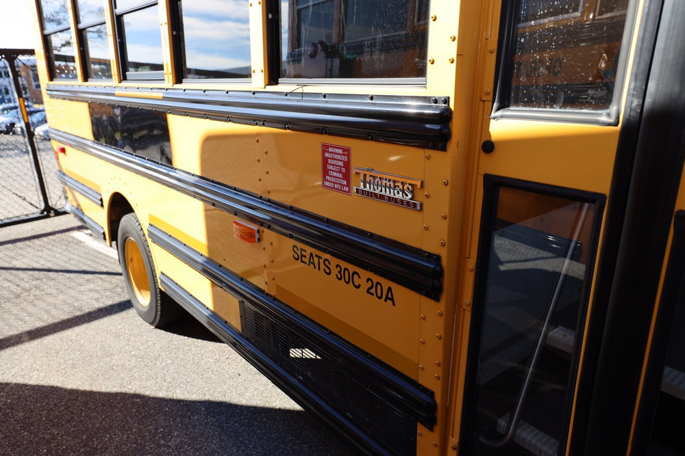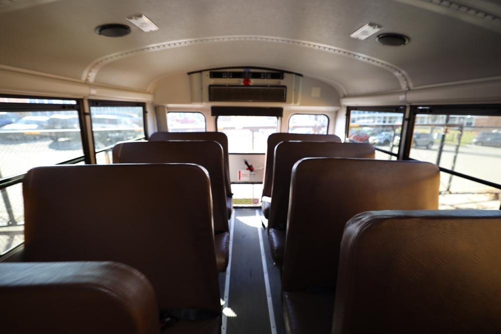 Items include 2007 Blue Bird Vision school bus; Troy-Bilt snow blower; 2011 Chevrolet Express 4500 school bus; Craftsman, Cub Cadet & Toro riding mowers; Traulsen two-door freezer & Motion Fitness/Positive Gaming student dance system dance game boards. Items are located in Ronkonkoma, NY.