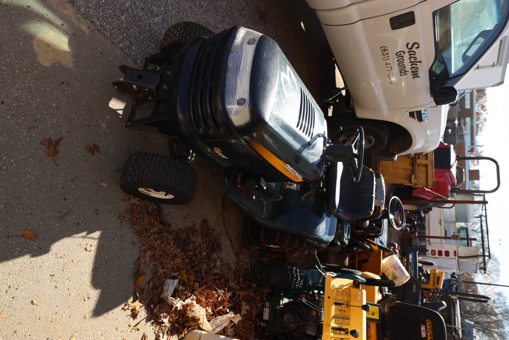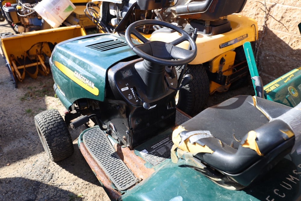 Items include 2007 Blue Bird Vision school bus; Troy-Bilt snow blower; 2011 Chevrolet Express 4500 school bus; Craftsman, Cub Cadet & Toro riding mowers; Traulsen two-door freezer & Motion Fitness/Positive Gaming student dance system dance game boards. Items are located in Ronkonkoma, NY.