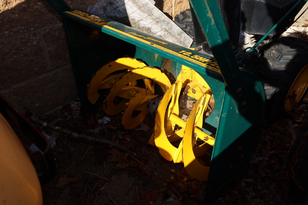 Troy-Bilt snowblower, Yardman snowblower, two Toro snowblowers. All poor, missing parts, do not run.