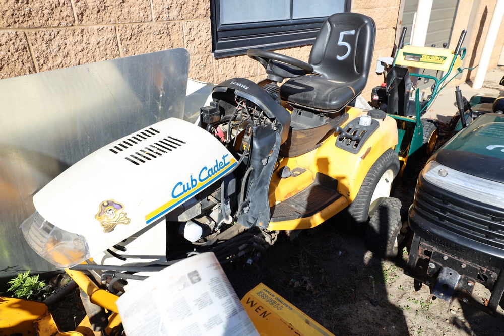 Items include 2007 Blue Bird Vision school bus; Troy-Bilt snow blower; 2011 Chevrolet Express 4500 school bus; Craftsman, Cub Cadet & Toro riding mowers; Traulsen two-door freezer & Motion Fitness/Positive Gaming student dance system dance game boards. Items are located in Ronkonkoma, NY.