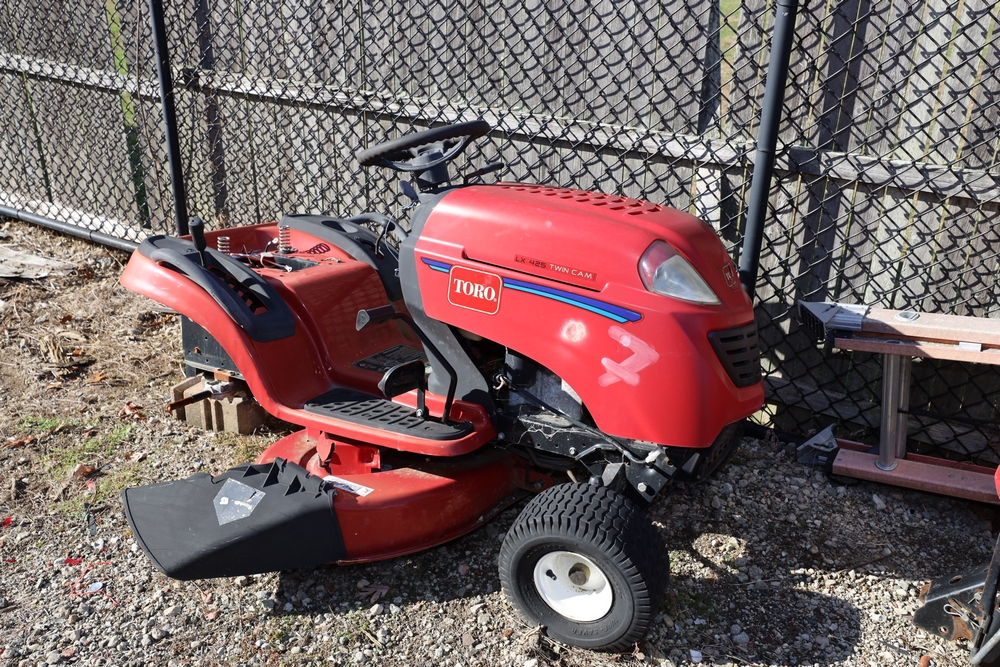 Items include 2007 Blue Bird Vision school bus; Troy-Bilt snow blower; 2011 Chevrolet Express 4500 school bus; Craftsman, Cub Cadet & Toro riding mowers; Traulsen two-door freezer & Motion Fitness/Positive Gaming student dance system dance game boards. Items are located in Ronkonkoma, NY.