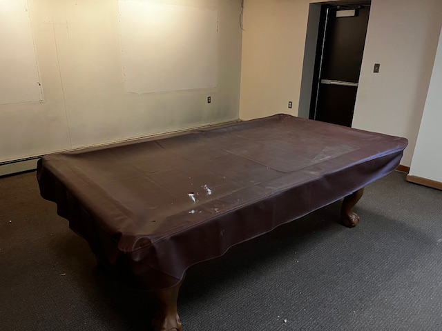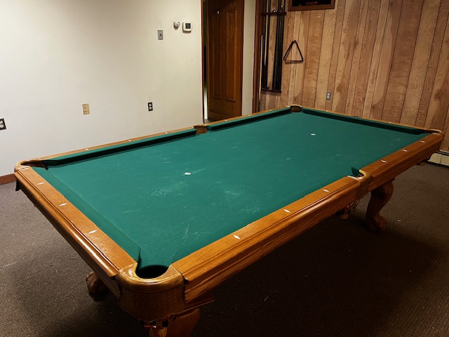 American Heritage Billiards pool table. Measuring: 98” X 55” X 33”. Pool table needs to be disassembled for removal. Located in basement. Door is 32” wide.