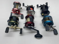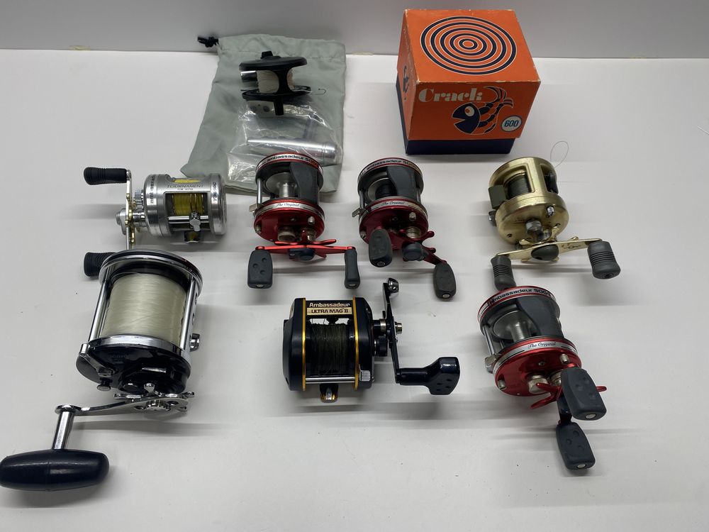 9 Fishing Reels. Crack 600, Penn JigMaster High Speed, Calcutta 250, Ambassadeur Ultra Mag, 3600C and 3 Ambassadeur 5000.