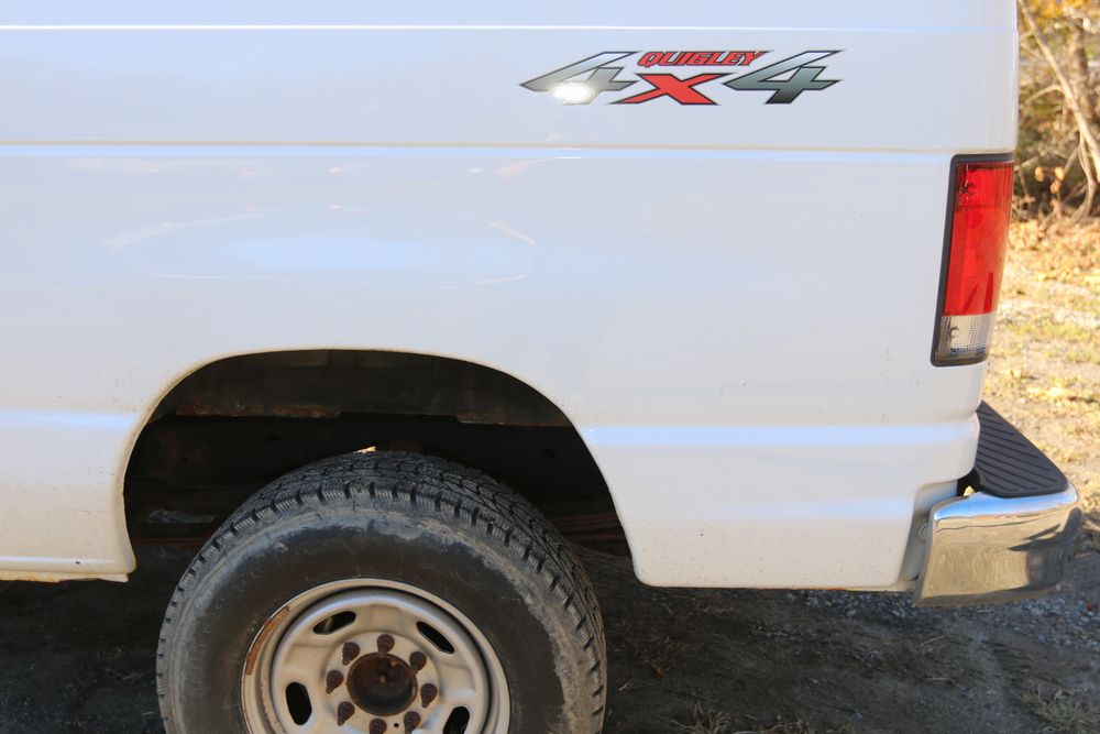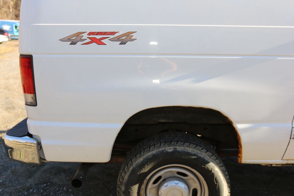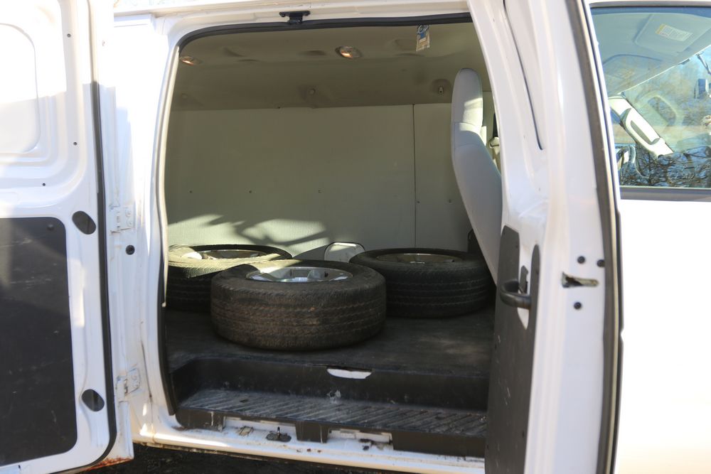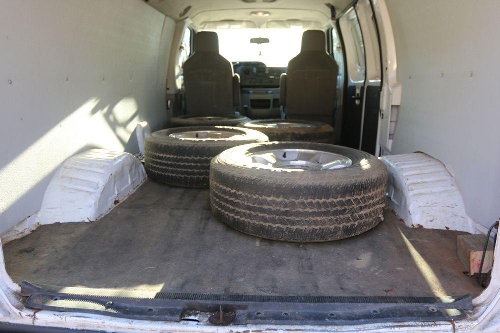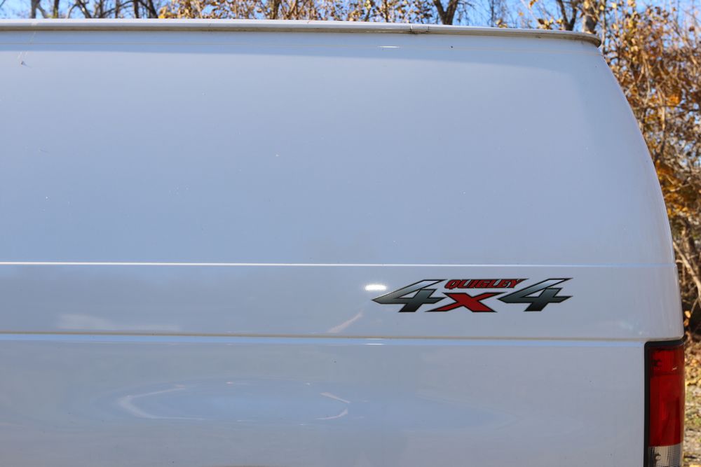 2014 Ford E-250 Van, Quigley 4x4 conversion, 5.4L V8 FFV engine, odometer reading: 136,325, VIN# 1FTNE2EL3EDA84949. Equipped with an automatic transmission, four-wheel drive, power windows, power locks, air conditioning, cloth seating, and an AM/FM audio system. Includes four additional LT275/65R18 wheels. Seller states, "The water pump & pullies, spark plugs & struts were replaced at 100k. I just did the front breaks & rotors maybe about 10k ago. Radio light is fading, most likely just needs re soldering. It will pass inspection." Runs and drives. Title and keys available.