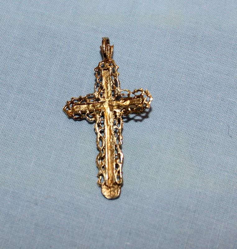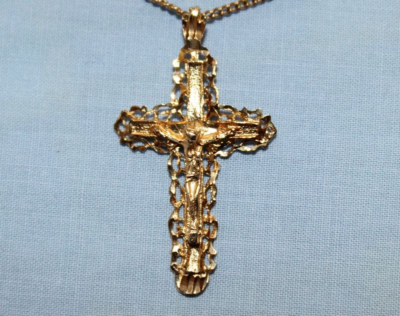 14k (stamped) yellow gold chain, 18"L and weighing 1.92 grams with 14k (tested) yellow gold crucifix 1.5"T and weighing 1.78 grams. Shipping is available for this item.