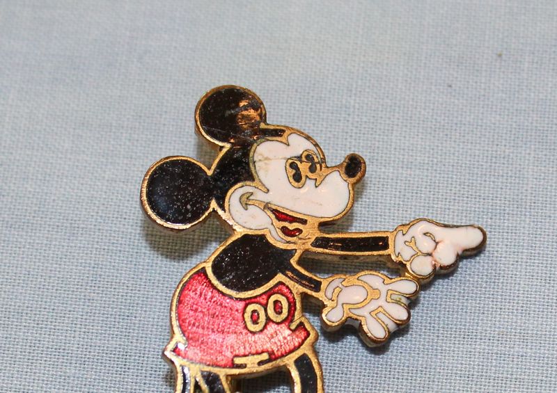 1930s Disney Mickey Mouse enamel on brass pin 1.24"T. Shipping is available for this item.