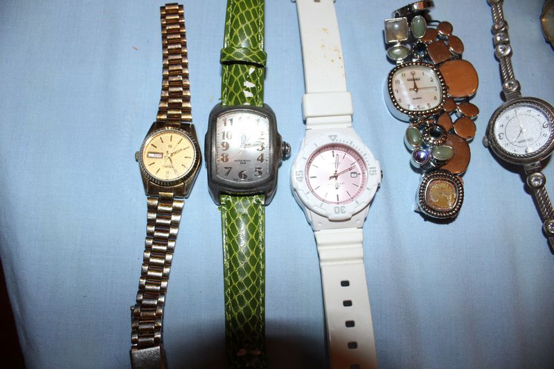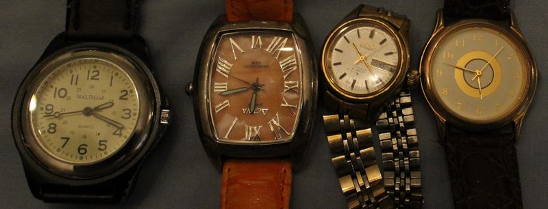 28 modern wrist watches by various makers including Seiko, Waltham, Activa, Armitron and others. Some are running. Functionality unknown for the others.