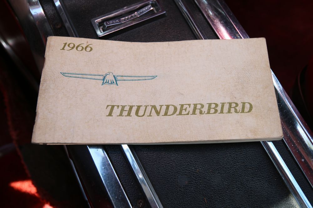 1966 Ford Thunderbird Coupe with odometer reading: 81,448 miles, warranty number: 6Y812110028. Equipped with a V8 engine. Runs and drives. Seller states, "This car has a rebuilt engine done in 2025 with warranty stamps visible on engine heads, rebuilt and adjusted carburetor, new radiator and fan with working clutch many other mechanical updates done this year alone. Added fuel filter, Fuel line and brake lines are checked and sound It has full power and is mechanically strong. Original paint frame and body, all original interior with all knobs and handles present, seats are re upholstered with genuine leather. New mufflers and serviced front and rear end and brakes. New front tires. All original glass. This car has a lot of muscle, currently registered insured and has being driven. Rides smooth, brakes good. Good powerful starter. Very soft ride ready to go with no immediate investment needed. As with any old car it will need some love and safekeeping."Title and keys available.