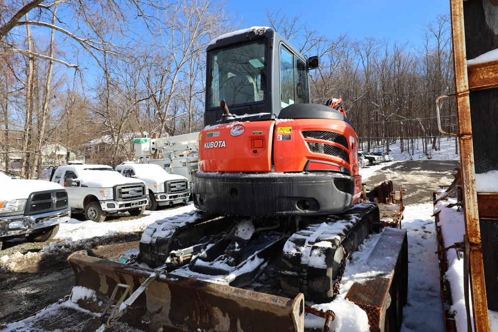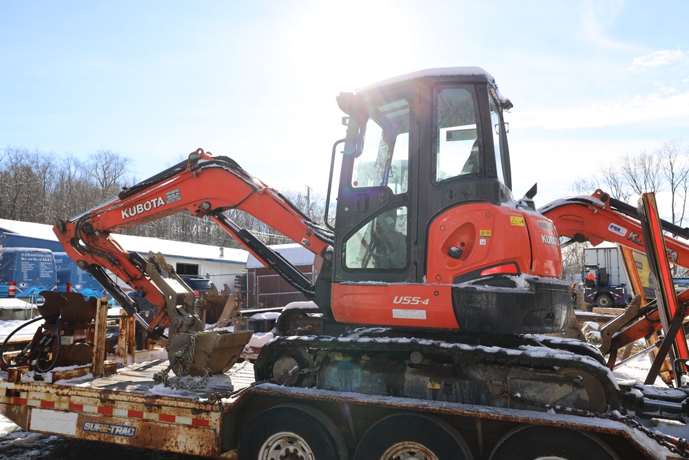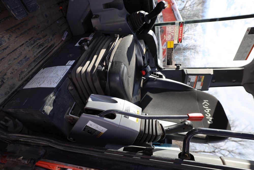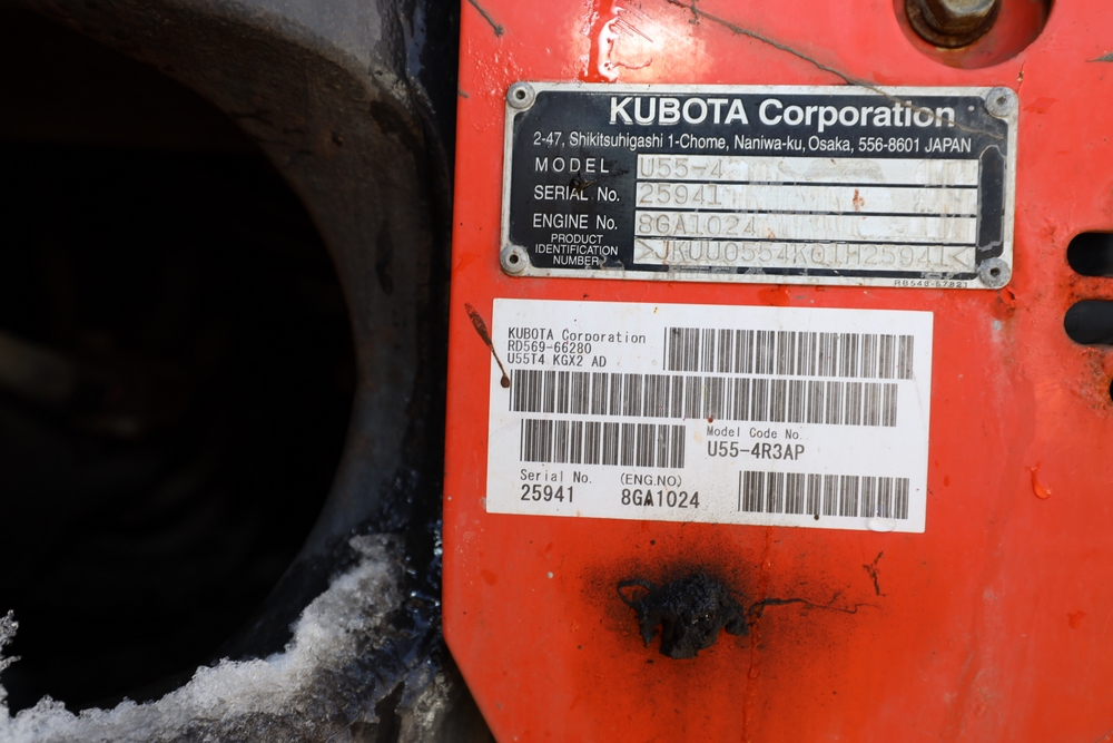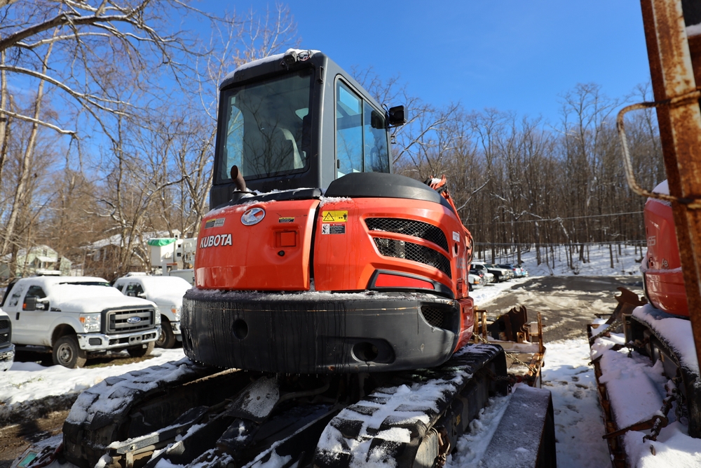 2016 Kubota U-55 Excavator. PIN: JKUU0554K01H25941. SN: 25941. Runs, operates. Enclosed cab. Includes hammer attachment, hydraulic thumb. Seller reports: Age Condition, mileage. Key available.