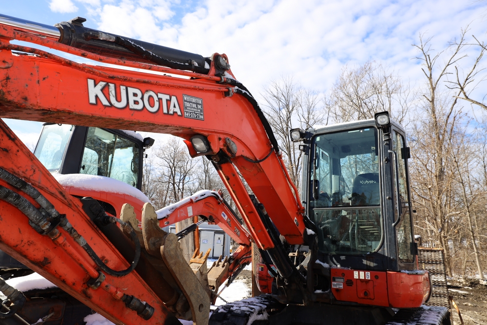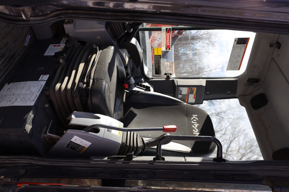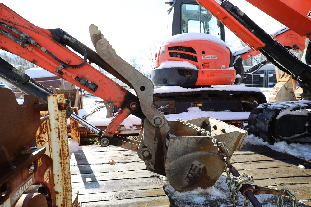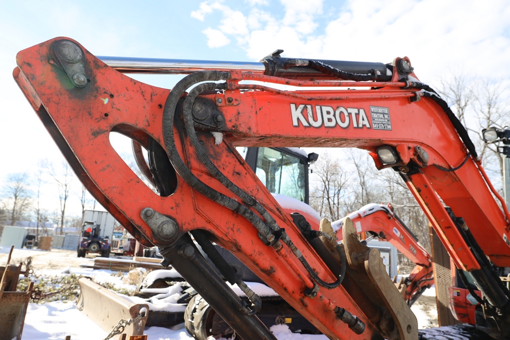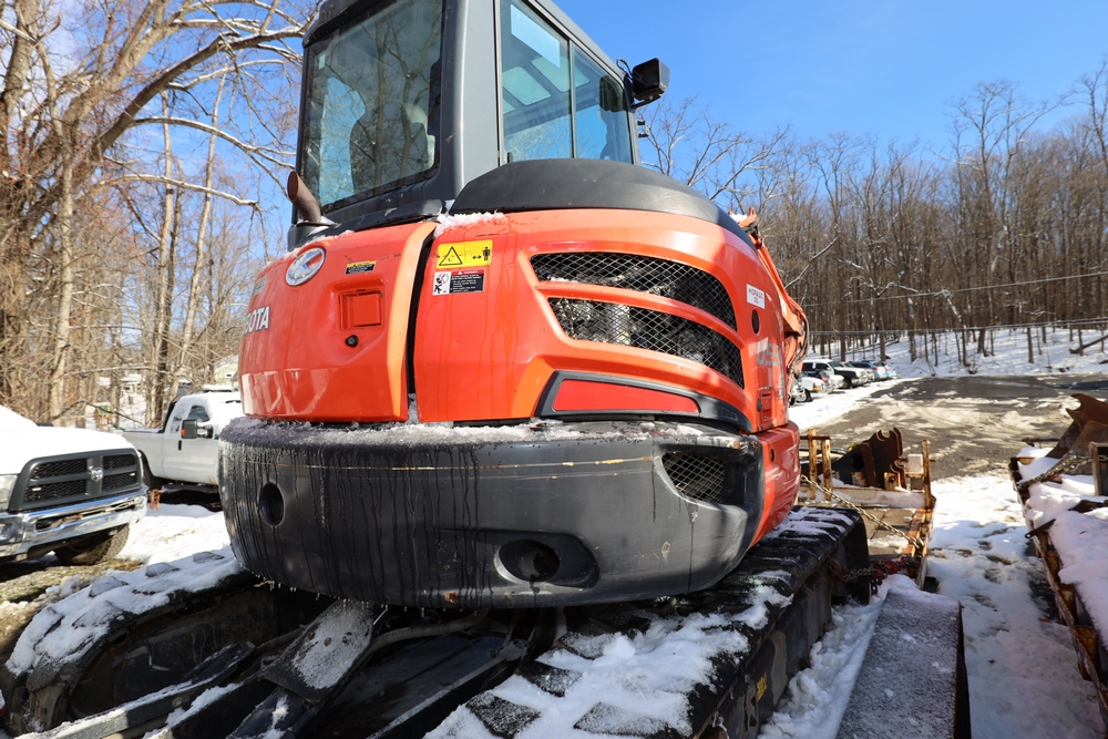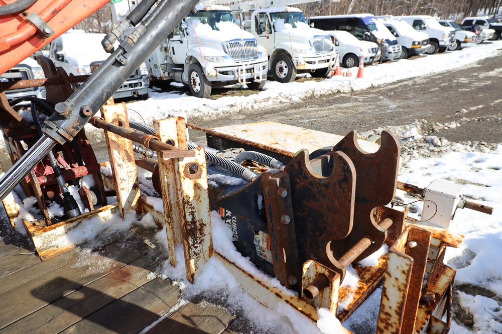 2016 Kubota U-55 Excavator. PIN: JKUU0554K01H25941. SN: 25941. Runs, operates. Enclosed cab. Includes hammer attachment, hydraulic thumb. Seller reports: Age Condition, mileage. Key available.