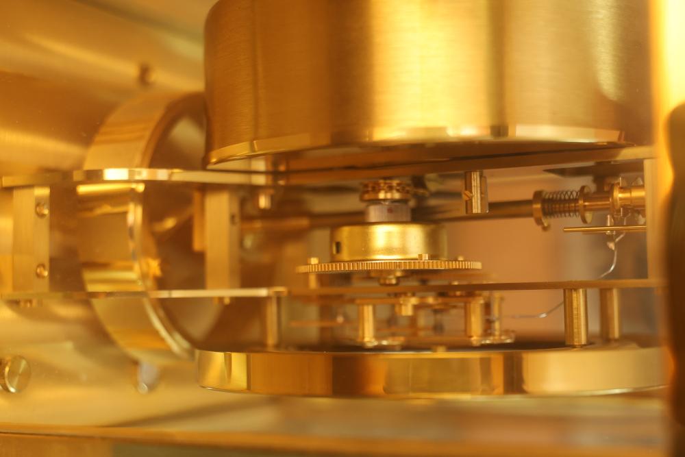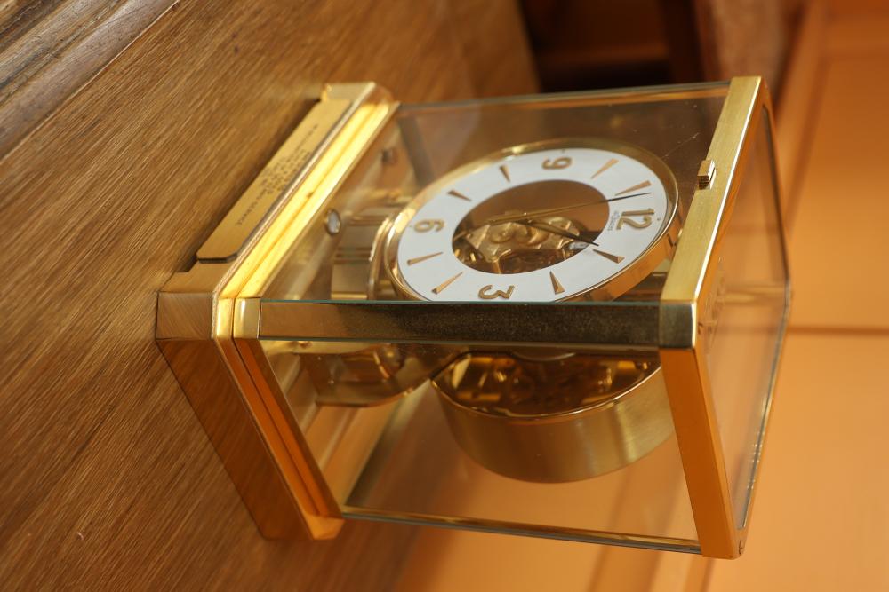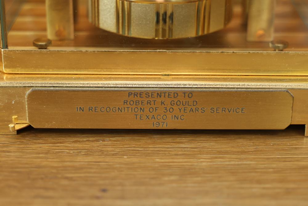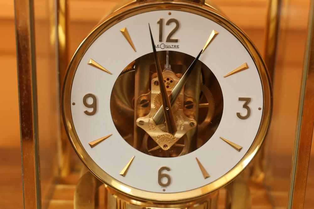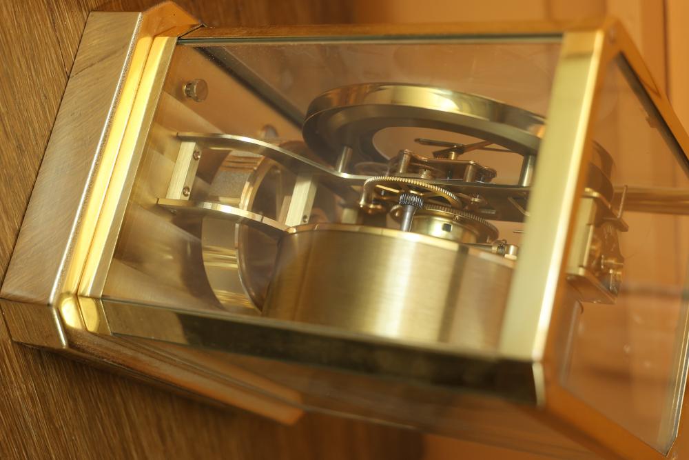 LeCoultre Atmos Clock Model 303709 in Glass and Brass Case. This clock features a glass and brass housing, mechanical operation and an internal mechanism that is fully visible through its transparent case. Pickup only.