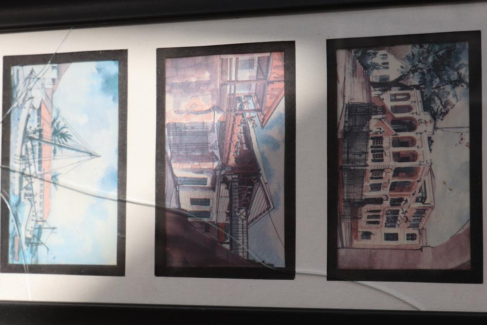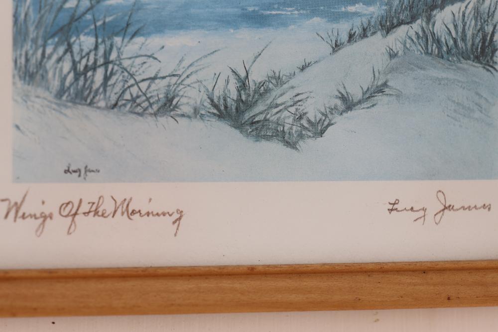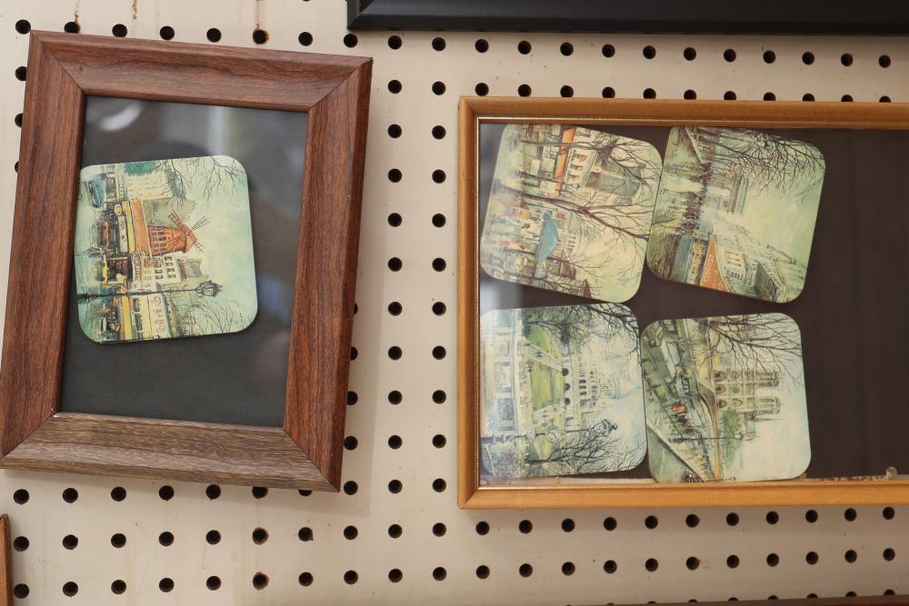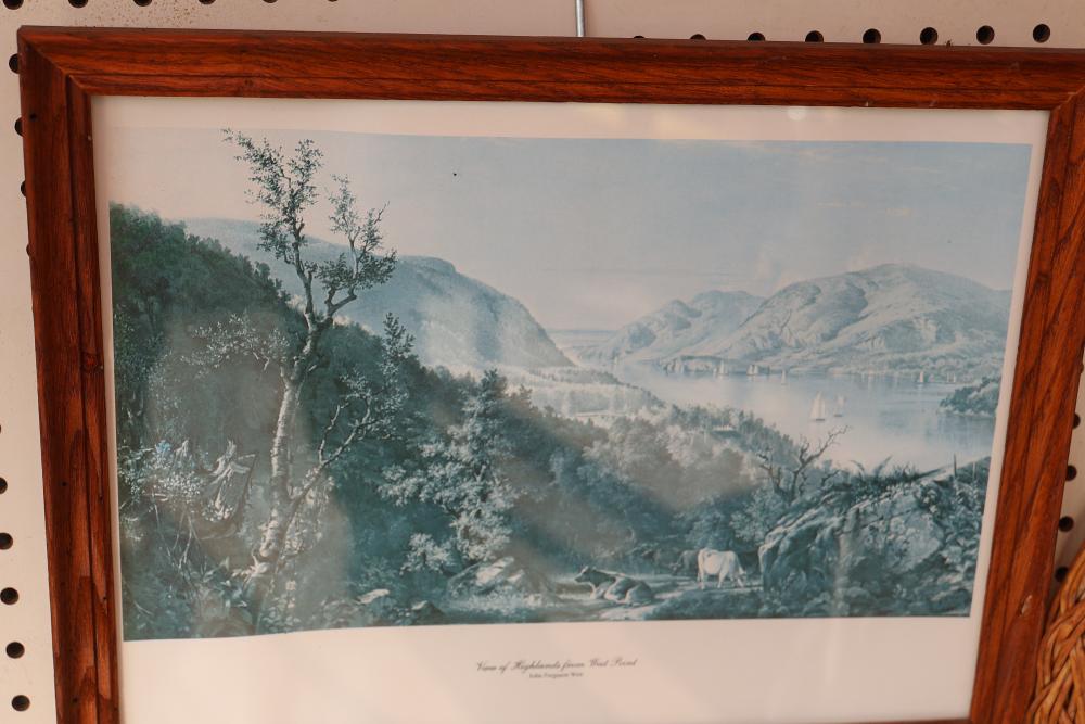 Framed Artwork and Prints with Mixed Wall Decor. Includes a watercolor-style depiction of the Eiffel Tower with park, a framed photograph of a waterfall, three vertically framed architectural scenes, an etched stone with bird motif, a scenic shoreline watercolor, framed woodland and lakeside art prints, a framed cross-stitch of a milkmaid, framed Snoopy illustration poster, two animal-themed hangings, a framed image of a lakeside landscape, an engraved wall panel, etc. Does not include items from other lots. Buyer must take all. Pickup only.