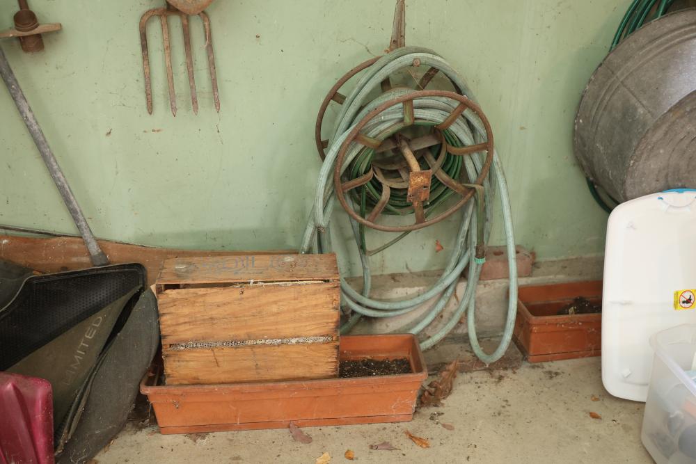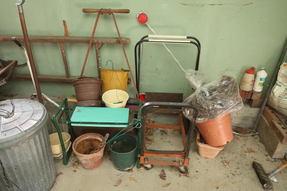 Tools, Vitamaster 80C Exercise Bike, Portable Air Conditioners, Fans, Gardening Supplies, contents of garage incl; garden tools, shovels, rakes, planters, an Atlas Aire cart, a variety of spray and cleaning products, license plates, plastic containers, buckets, water bottles, wheelchair units, etc. Does not include items from other lots. Buyer is responsible for all help and materials necessary for safe and proper removal. Buyer must take all. Items located on first floor, no stairs. Pickup only.