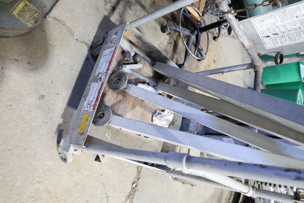 Items include 2017 Nissan Leaf SV electric hatchback; Sewer Equipment Co. of America model 747-SP2000 trailer jet & electric-powered Genie personnel lift on a rolling base. Items are located in Mount Kisco, NY.