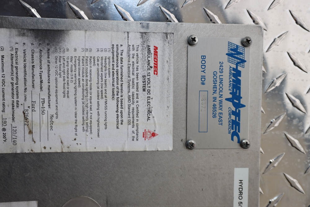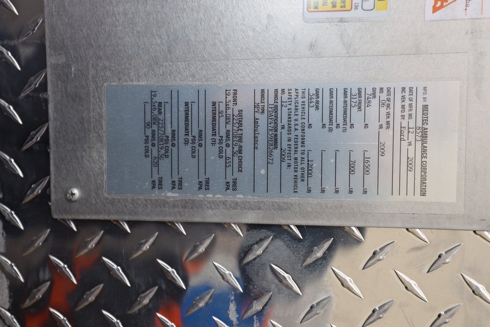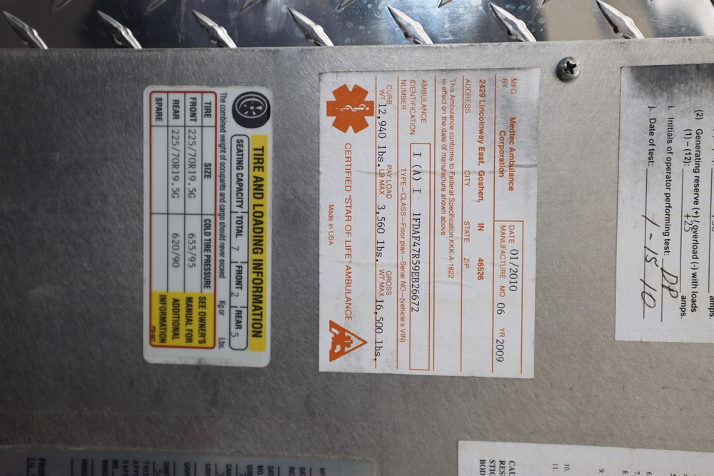 2009 Ford F-450 Super Duty XLT 4x4 Type I Ambulance. Mfg. by Medtec Ambulance Corp. Odometer reading: 61,765. VIN: 1FDAF47R59EB26672. Body: Chassis 2D. Engine: Power Stroke 6.4L V8 CRDI Diesel. Seller reports: Runs, drives, operates, no known problems. Title & Key available. Stretcher Not Included.