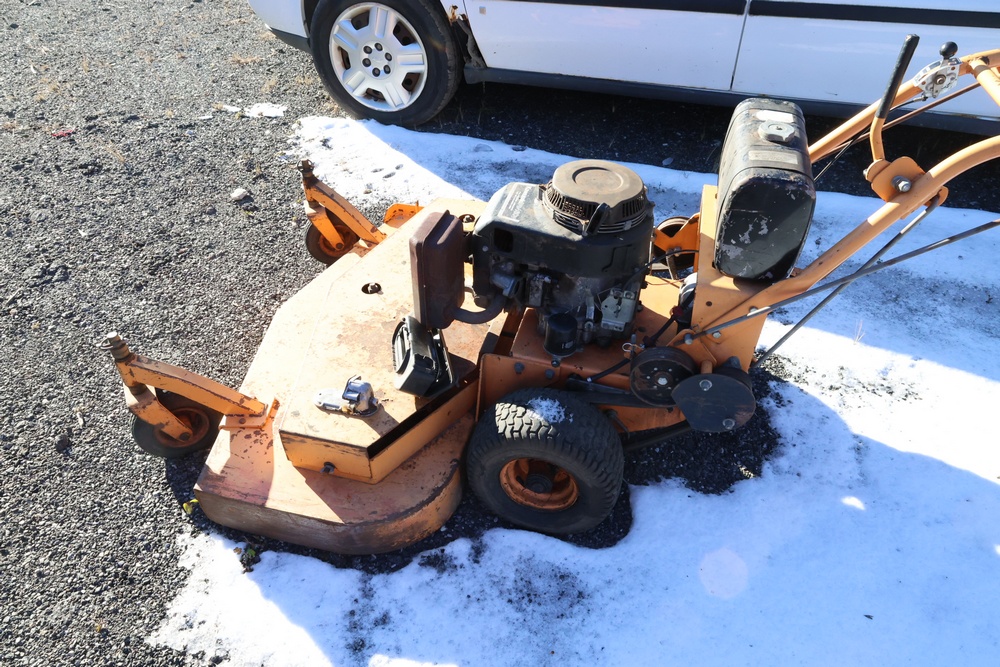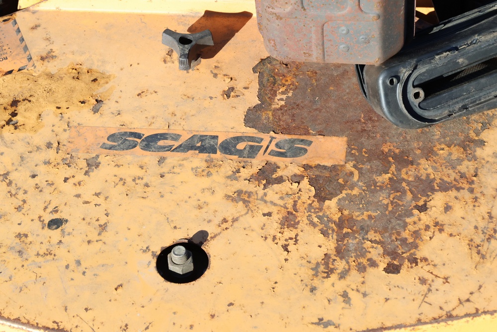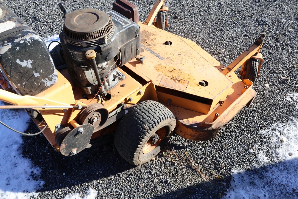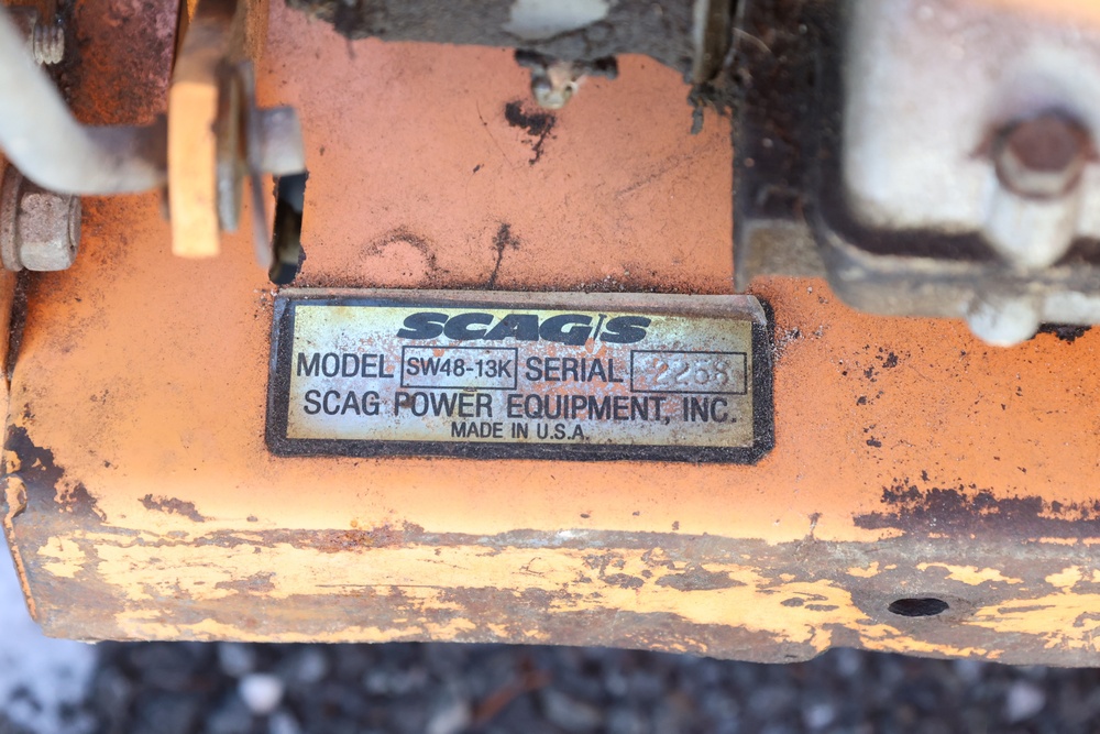 Scag SW48-13K walk-behind mower, serial 2265. Seller reports: engine needs to be replaced, the deck and gas tank are not rotted.