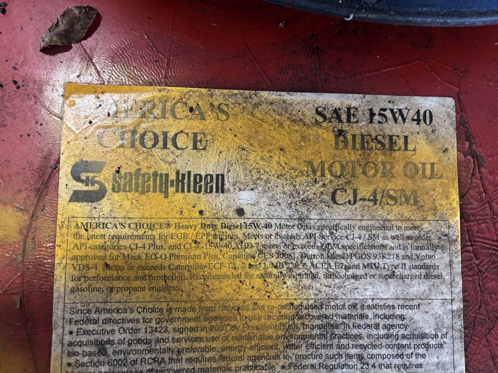 (2) 55-gallon drums of 15w40 heavy duty diesel engine oil, sealed. Peak and Americas Choice.