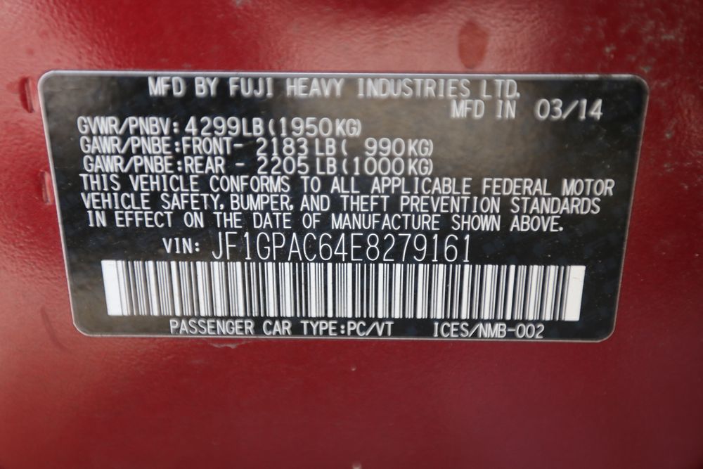 2014 Subaru Impreza Hatchback, 2.0L H4 DOHC 16V engine, all weather package, CVT Transmission, VIN# JF1GPAC64E8279161, odometer reading: 125,505. Cloth interior, power windows/locks/mirror, cruise control, heated seats, navigation, sunroof, garage door opener. Recent oil change and new tires. Runs, drives. Has keys, title & bill of sale.