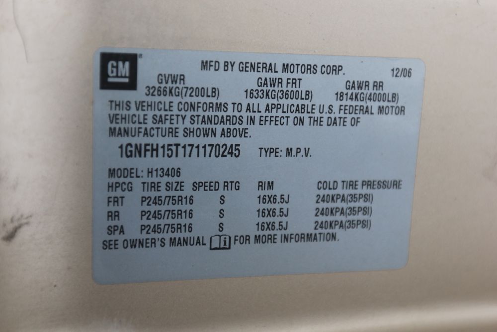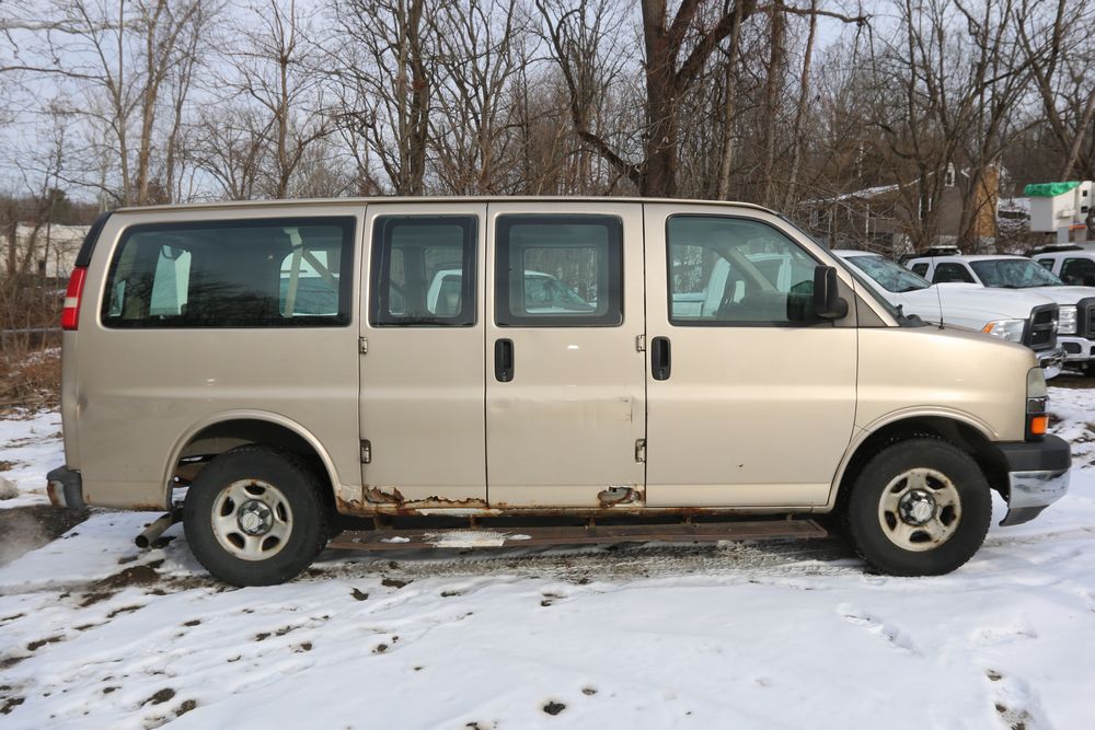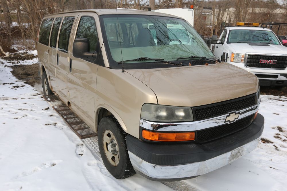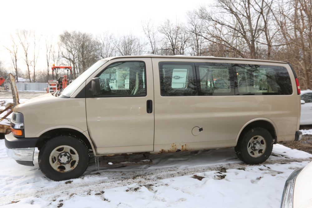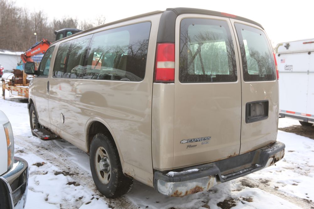 2007 Chevrolet Express, 5.3L V8 OHV 16V engine, AWD, Automatic Transmission, VIN# 1GNFH15T171170245, odometer reading: 237,335. Cloth interior, power windows/locks/mirrors, AM/FM. Brakes and power steering need work. Runs, drives. Has keys, title & bill of sale.