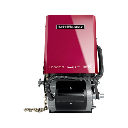 LiftMaster H501L5 Hoist Industrial Garage Door Opener. Features a 1/2 HP motor, Logic 5.0, and Security+ 2.0 technologies, with MyQ compatibility. Includes a manual chain hoist, control switch with open, close, and stop functions, chain, sprocket, and necessary wiring. UL Listed. Pickup only.