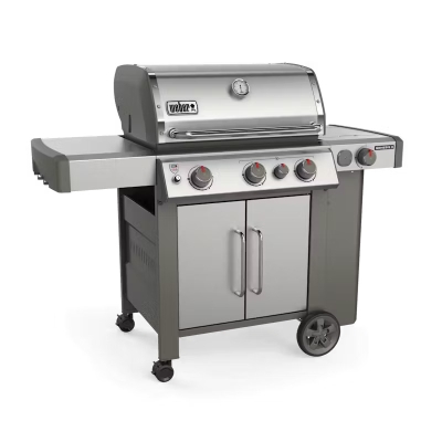 Weber Genesis II S-335 LP Gas Stainless Steel Grill. Features stainless steel construction, three burners, an enclosed cabinet, and comes with instruction manual. Item is new in its original packaging. Pickup only.